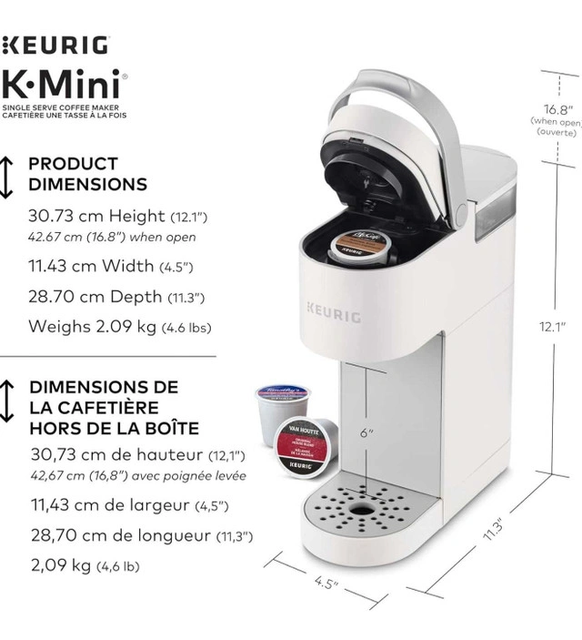 Keurig K-Mini V2 Coffee Maker – White – Brand New Brew your favorite coffee in minutes with this slim, stylish Keurig K-Mini. At less than 5" wide, it’s designed to fit anywhere while still packing full Keurig power. ✅ Brews cup sizes 6–12oz with K-Cup pods ✅ Removable 12oz reservoir – add fresh water each brew ✅ Energy-efficient – auto shutoff after 90 seconds ✅ Compact & portable – great for small spaces, office, or travel ✅ Sleek modern design in white Condition: Brand new! Pickup in Milton Can be arranged for Mississauga meetup.