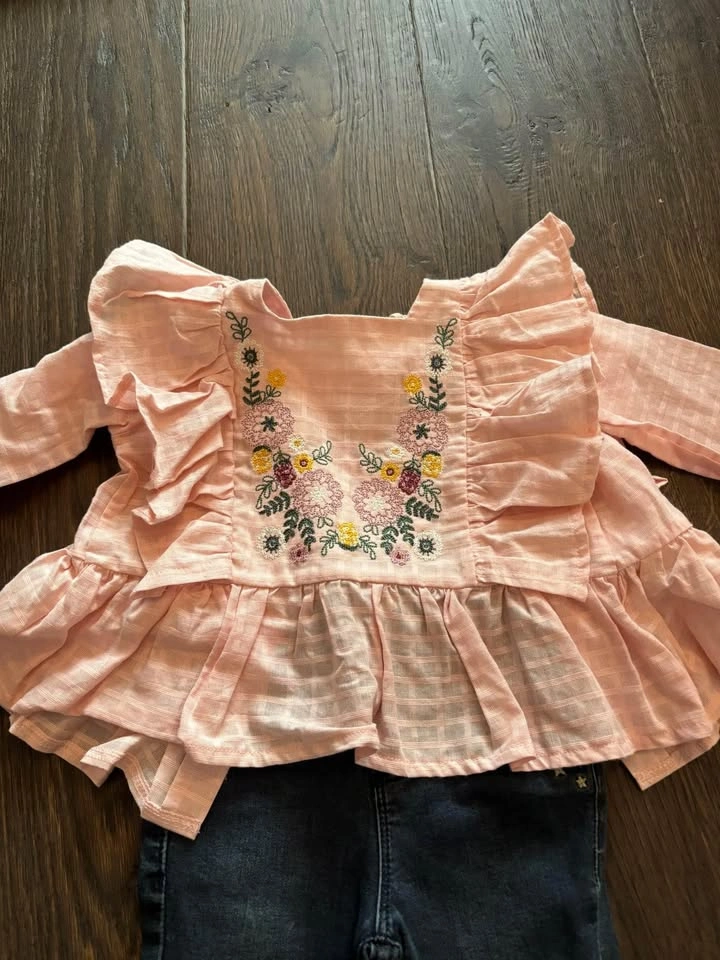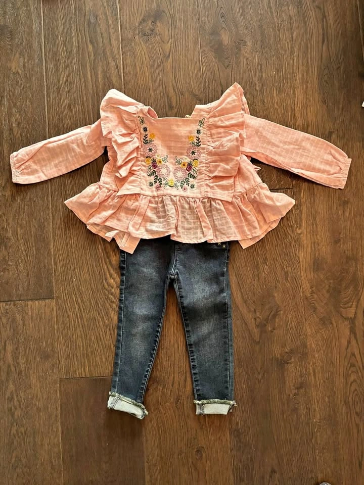 Brand new. Cutest little set. Top size 18months and jeans 2t. Perfect for Easter and Spring Pick up in East York, woodbine & cosburn
