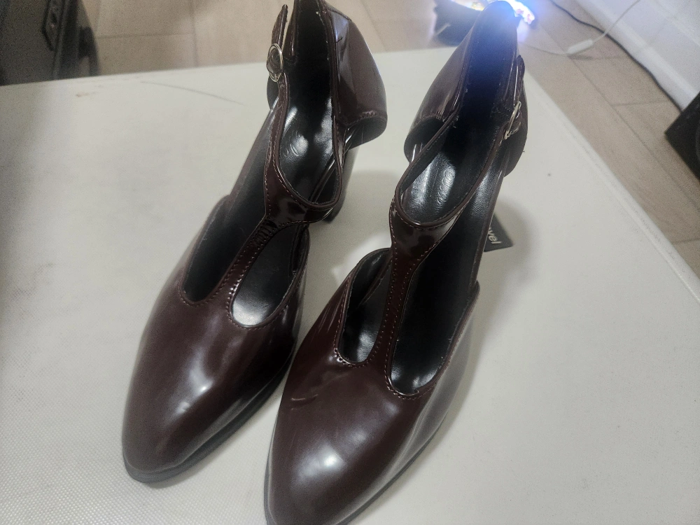 These stylish brown heels feature a classic T-strap design. They would be great for a night out or a special occasion! They have a block heel for added comfort and stability.