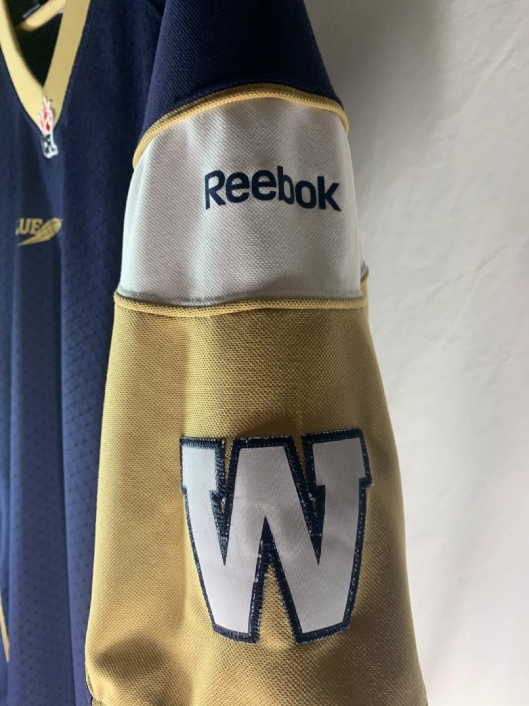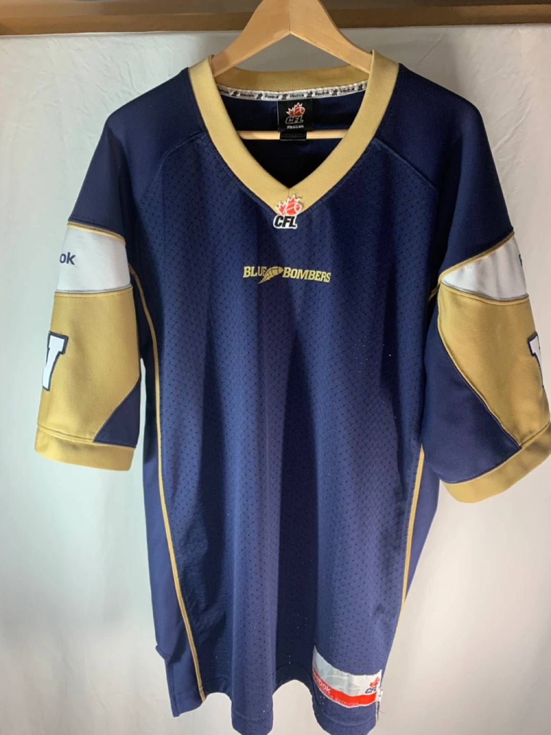 Selling a Reebok CFL Winnipeg Blue Bombers jersey in size L. The jersey is in great condition and features the team's logo and colours. Perfect for any Blue Bombers fan!