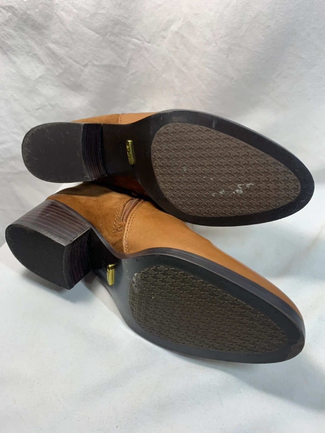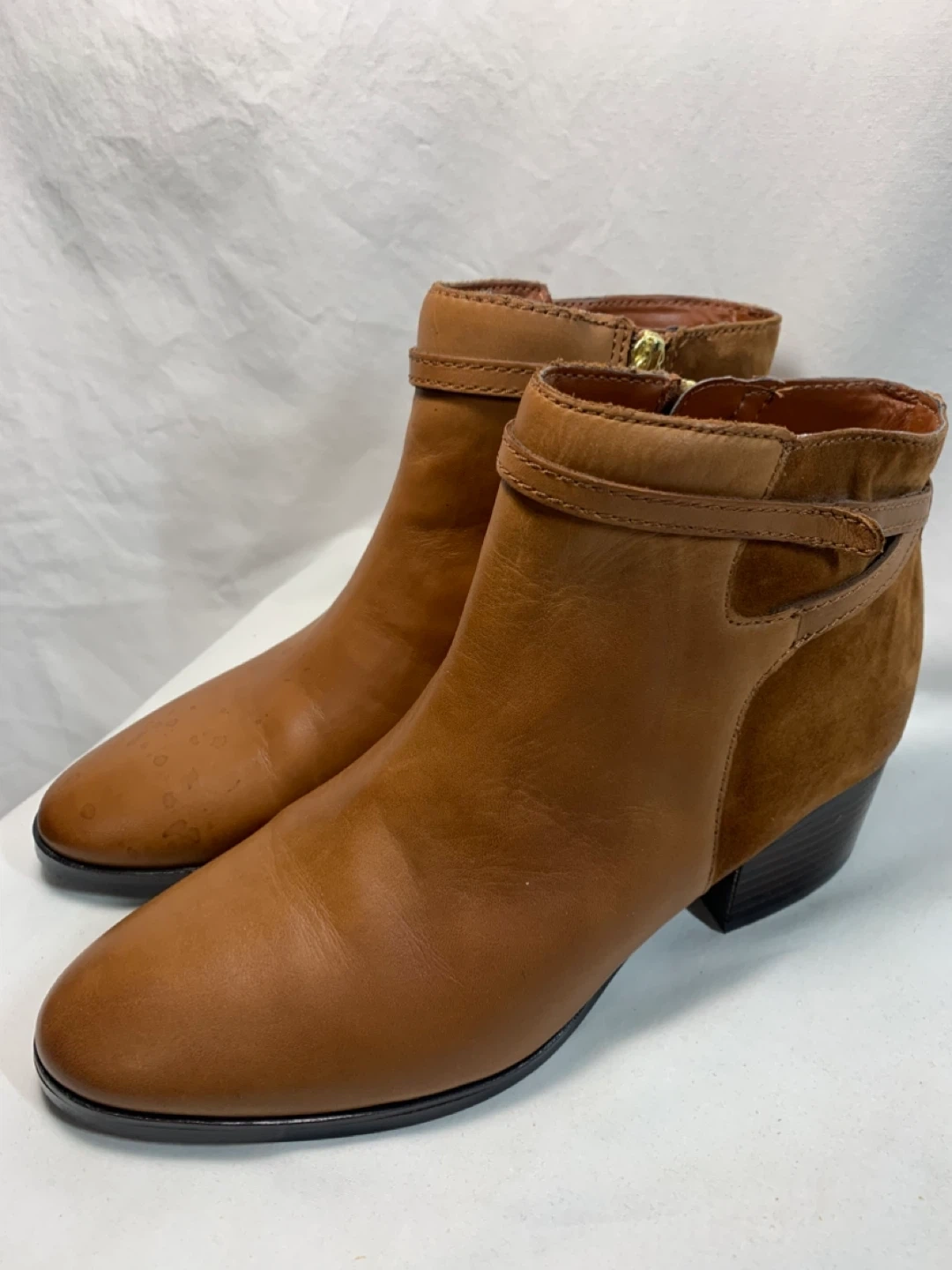 Snazzy pair of Ralph Lauren ankle boots in a lovely shade of brown! They have a stylish zip and strap detail. Size 8.5 women’s.