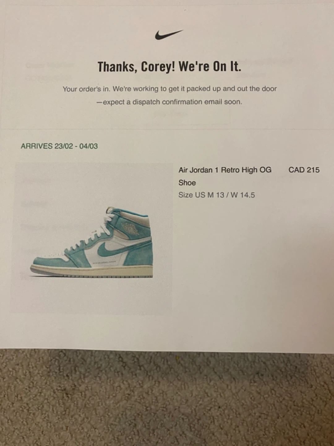 Size 13 deadstock with Nike.ca receipt. Purchased on Feb 20, 2019. Cash only, no e-transfers.