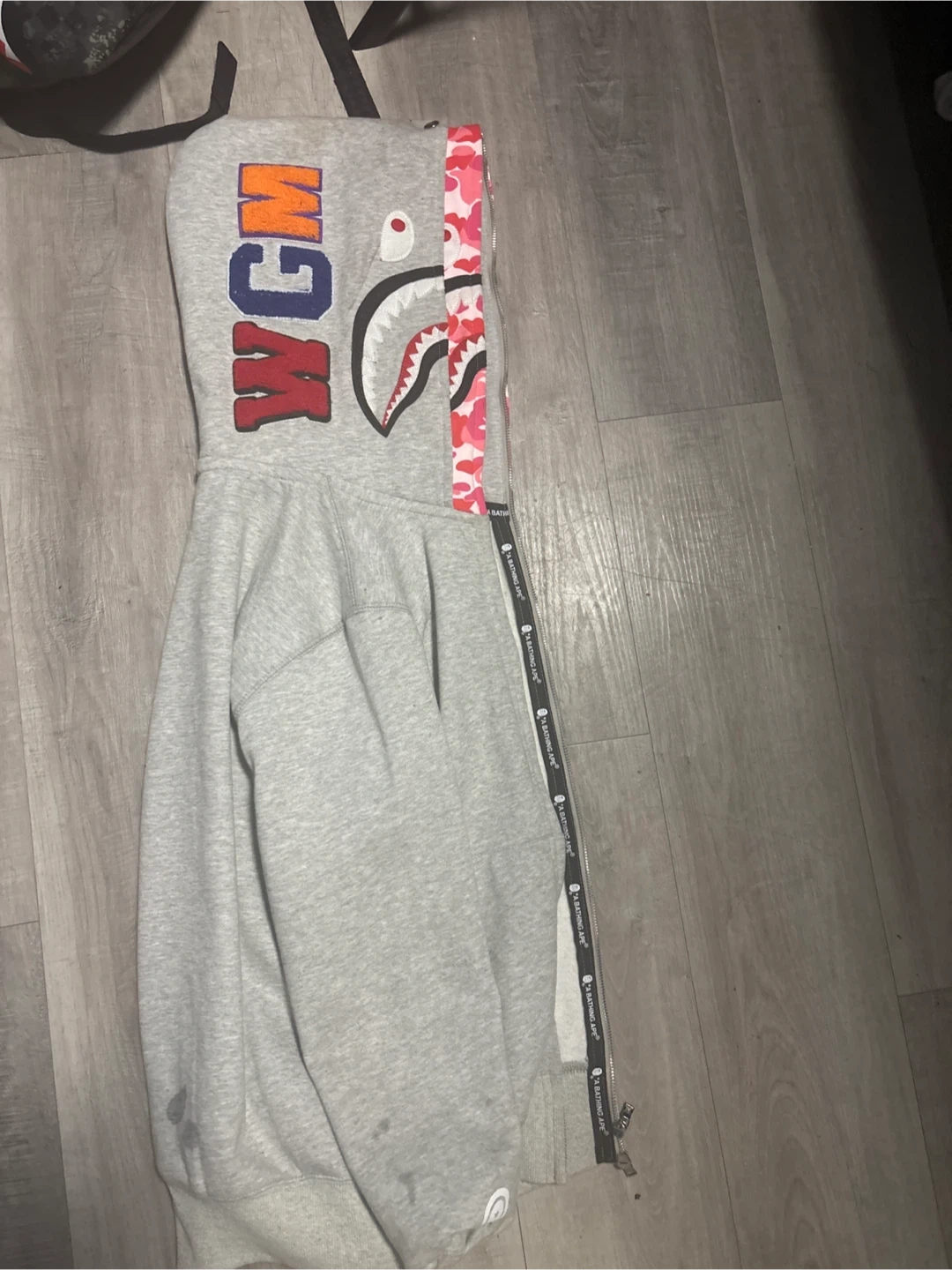 Selling a Bathing Ape (BAPE) Shark Hoodie in grey, size medium. It's in great condition and comes with the original BAPE packaging and tags! A classic piece for any streetwear enthusiast