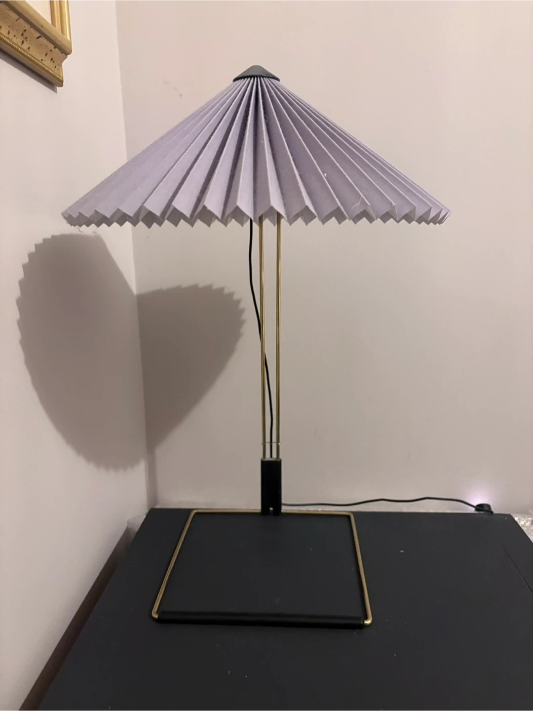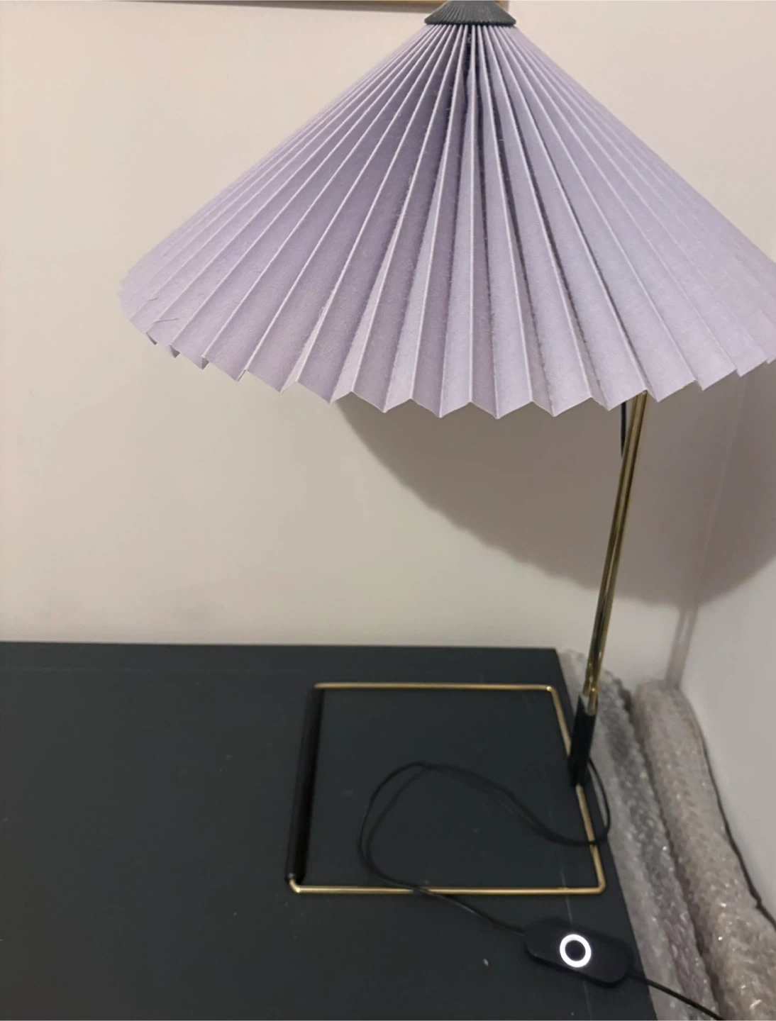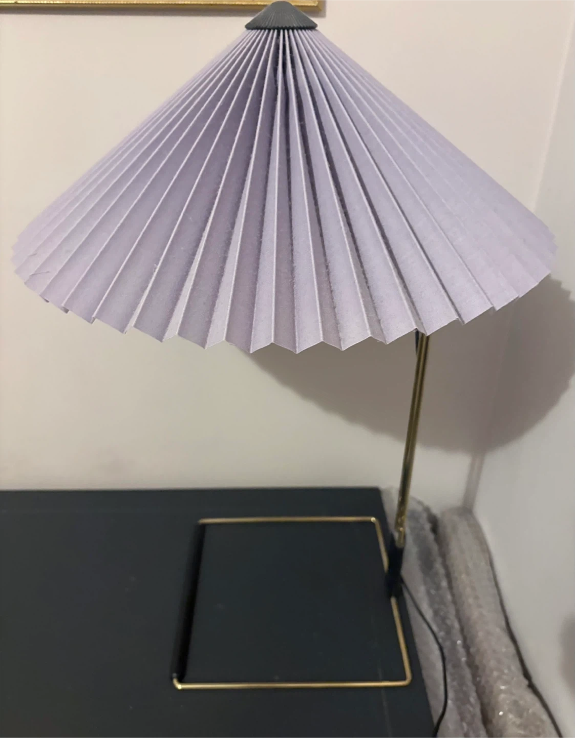 Hay Matin Table Lamp by Inga Sempe with Lavender Shade AS PRICED / Listing will be removed if not picked up this week thanks. Polished Brass Base Large Size Dimmable 3 Settings 200cm Cord Integrated LED Bulb Purchased at Design Within Reach (total cost was over $400) Dimensions: 20.5” h x 13 7/8” w x 13 7/8” d 1.25 lbs