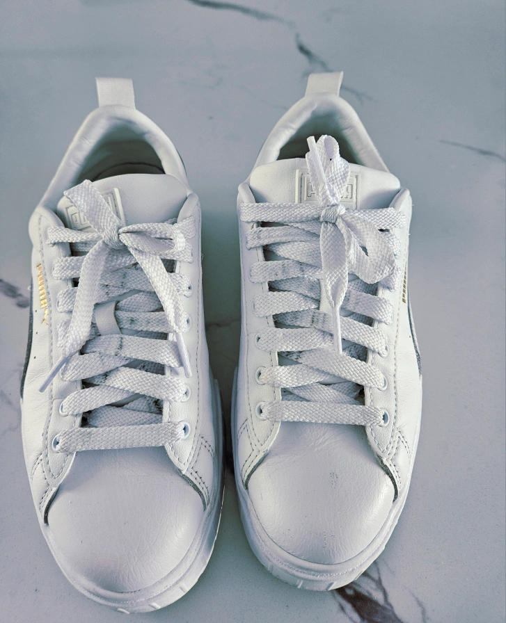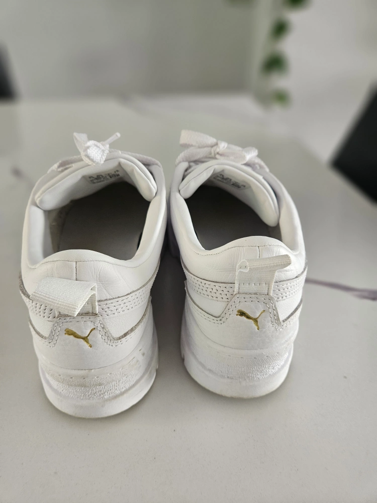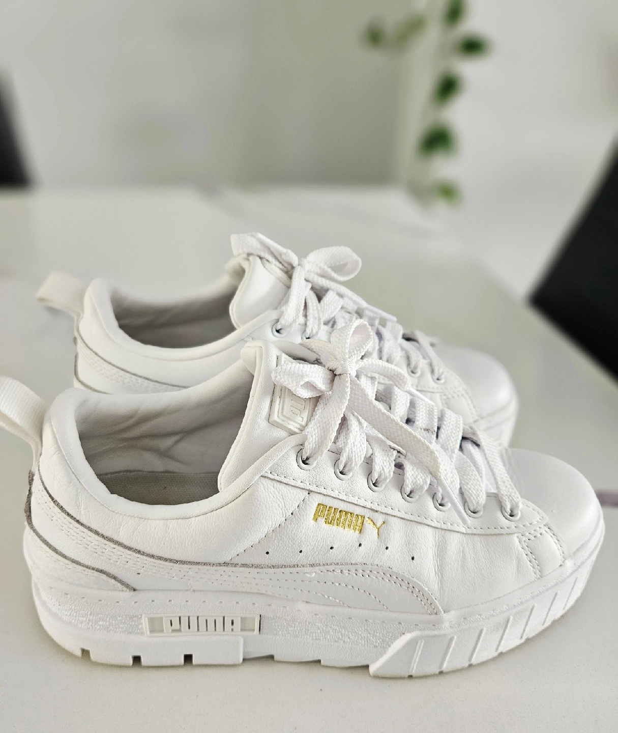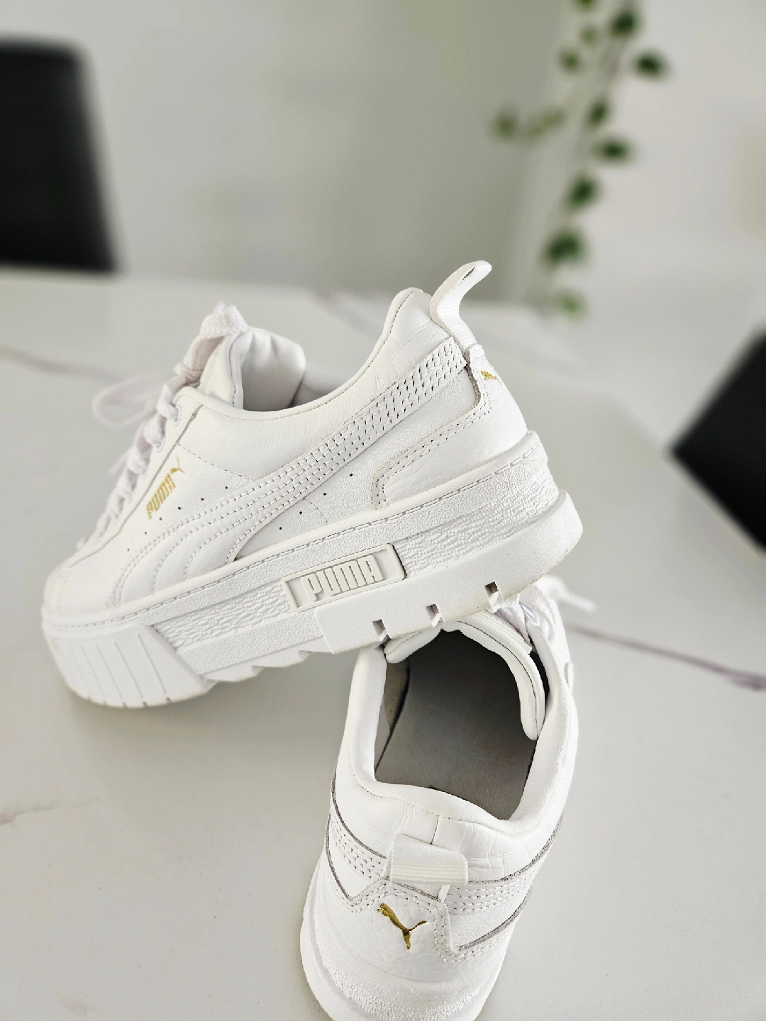 Selling a pair of Puma Mayze Stack sneakers in all-white! These are in great condition and are a women's size 7. Super stylish and comfortable for everyday wear!