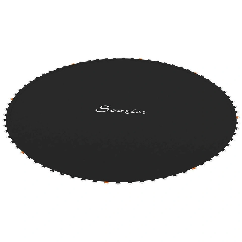 Compatible: Fits 12 ft round trampoline with 72 V-rings, using 5.5" (14cm) springs. (Note: frame & springs not included.) - Selected Material: The PP trampoline mat is waterproof, very easy to clean if it is dirty, also can bear 264lbs (120kg) weight and is suitable for long jumps. - Safer & Stronger: This trampoline mat replacement features eight rows of stitching, ensuring sturdiness and UV sun protective coating for long use. ⁃ How to Measure: First, measure the diameter of your trampoline's frame. Next, count the number of springs it has. Lastly, measure the length of each spring from a end of the hook to another. ⁃ Replacement Trampoline Mat Dimensions: 127.2" (323cm). A spring installation tool included for your convenience. Overall Dimensions: 127.2" (323cm) Weight Capacity: 264 lbs Frame Size: 12.0 Item Display Diameter: 323 Centimeters Item Weight: 7.3 lbs Weight Capacity Maximum: 264 lbs Item Length Longer Edge: 323 Centimeters Maximum Weight Recommendation: 264 lbs
