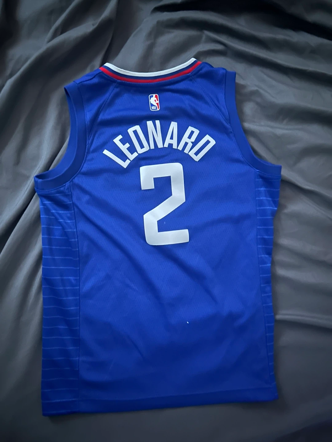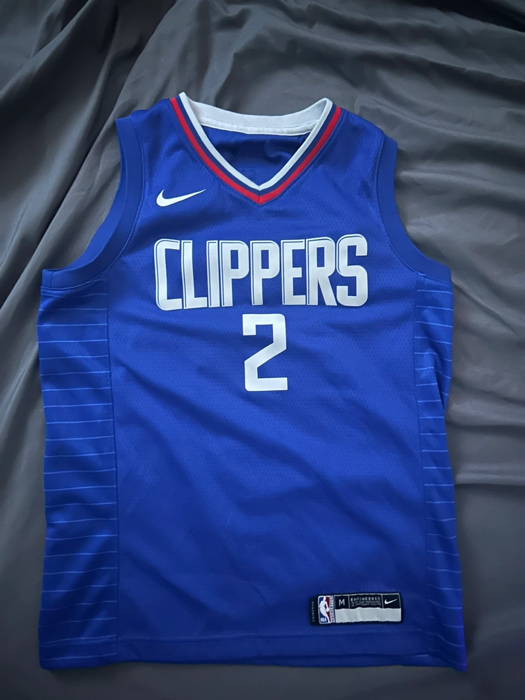 Selling a Nike Kawhi Leonard Clippers jersey in size medium! It's in great condition and ready for a new home. The jersey is blue and features Leonard's name and number 2 on the back, with the Clippers logo on the front. Perfect for any basketball fan!
