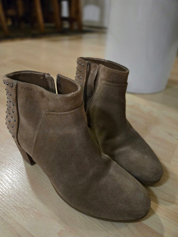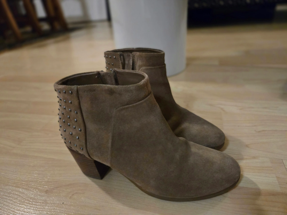 Selling a pair of Geox ankle boots in a lovely brown suede! They're in good condition and feature stylish stud detailing on the sides. Size 7. Reason of Selling: I am moving to new place. Only available for pick up.