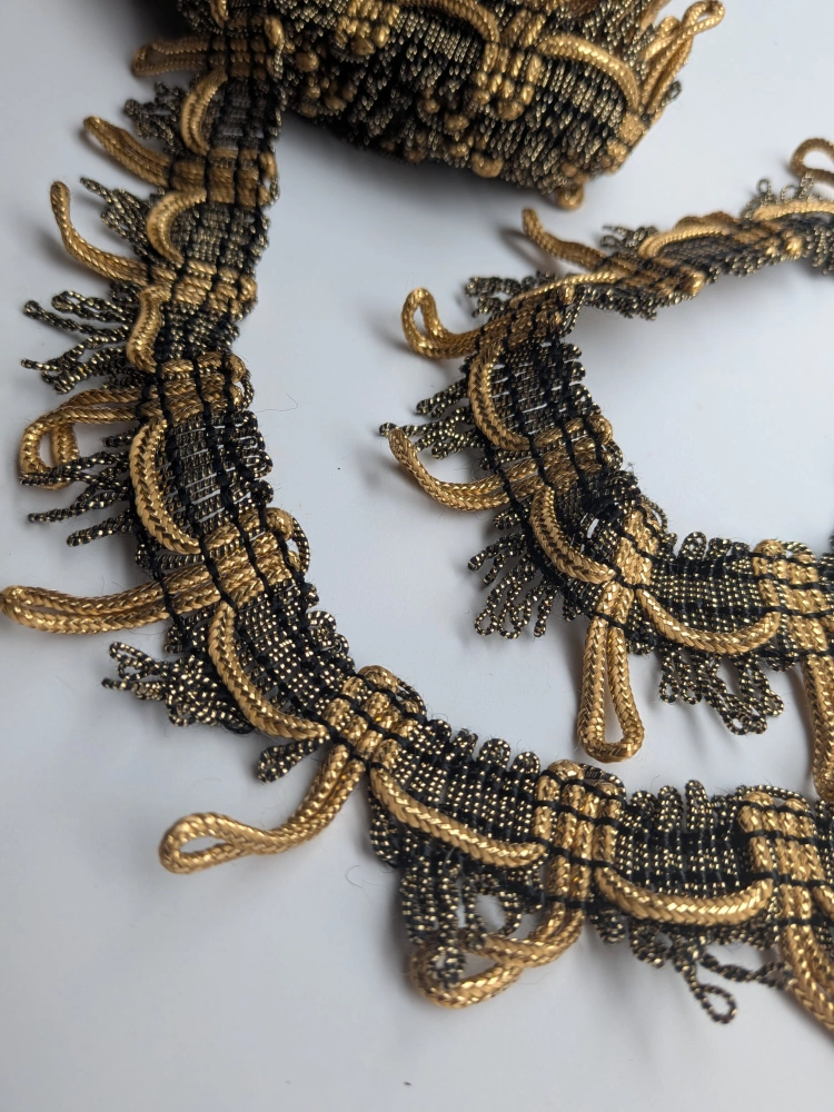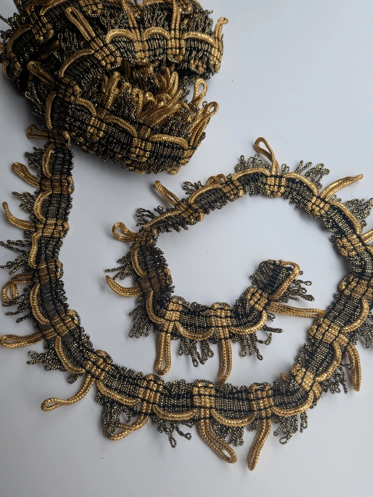 THREE YARDS decorative fringe trim in gold and black. From the 60's era. This would be great for adding a unique touch to clothing, home decor, or craft projects. It's in good condition and ready for a new home! Cash only, no etransfers Location: Rathburn & Renforth dr, Etobicoke * If you are reading this, ad is up and item is STILL AVAILABLE