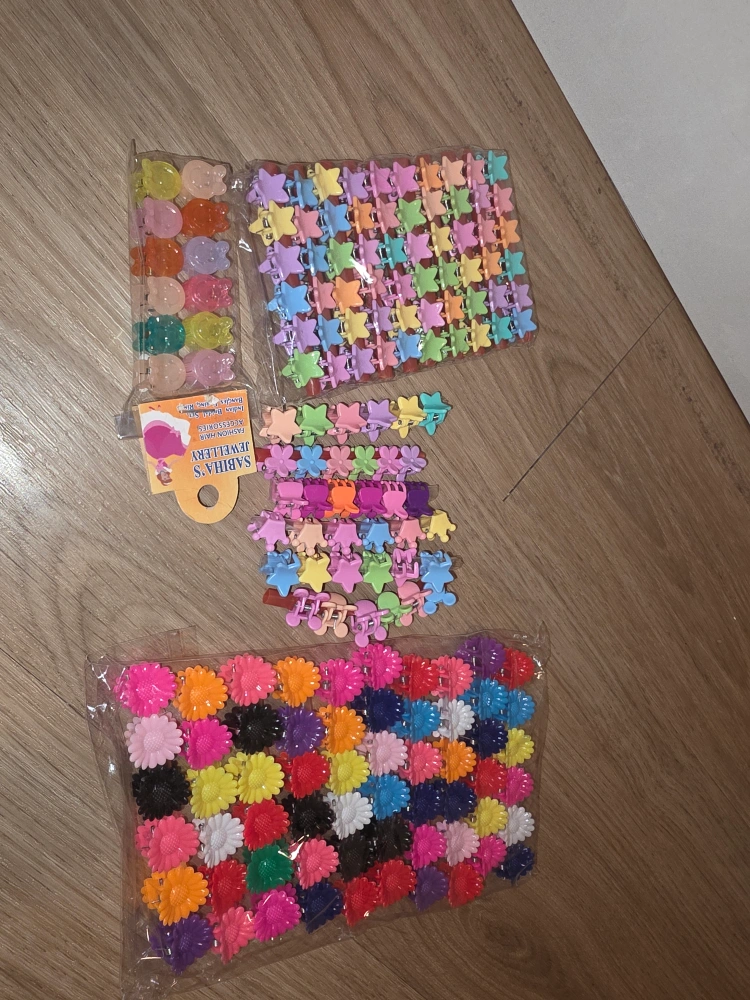 Selling a bundle of assorted hair accessories. They are all new and still in their original packaging. Includes a variety of colourful hair clips and headbands. Perfect for kids or anyone who loves fun hair accessories!