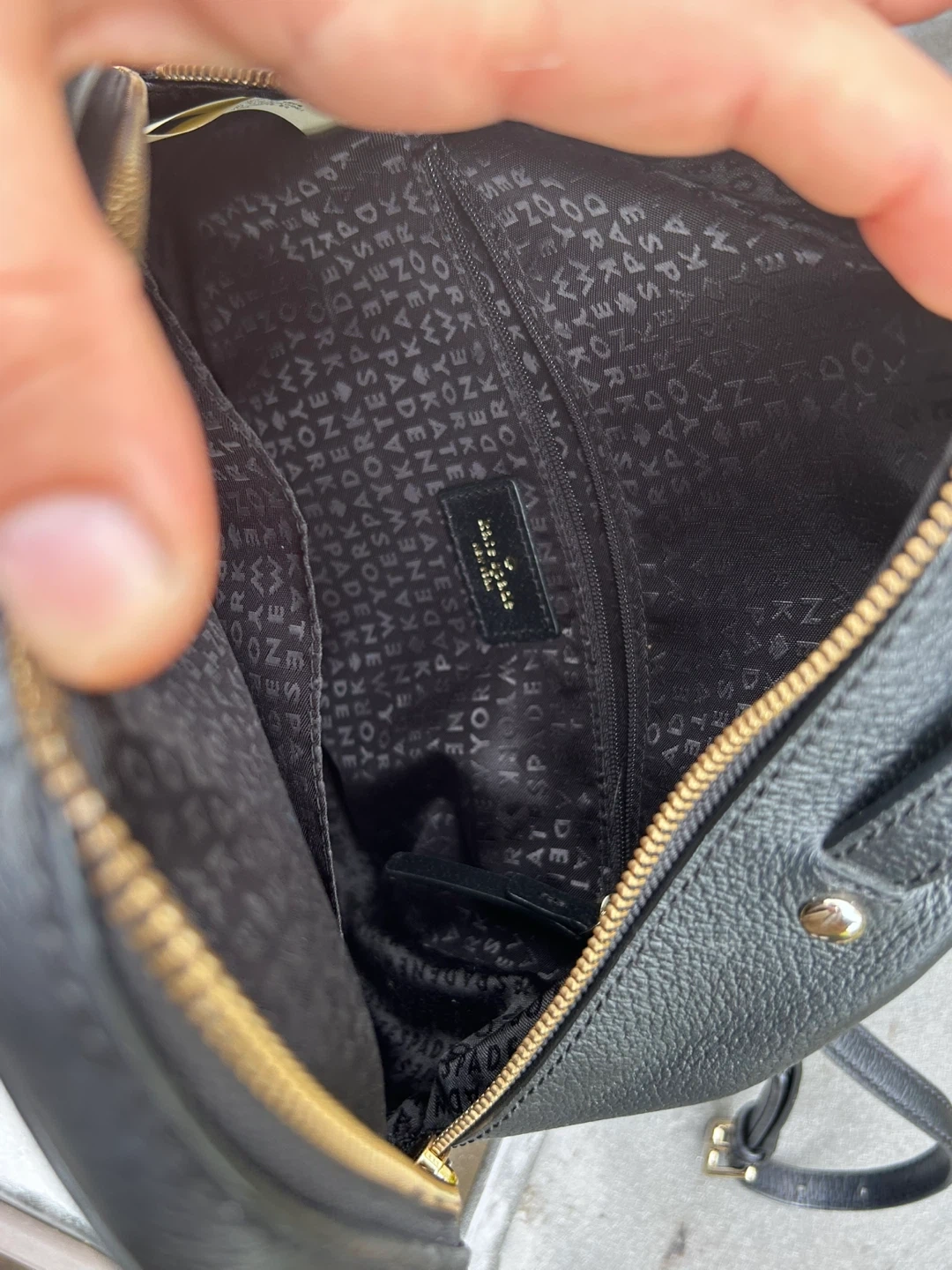 Selling a cute Kate Spade backpack in black leather. It's in great condition and perfect for everyday use. The interior lining also features the Kate Spade logo pattern