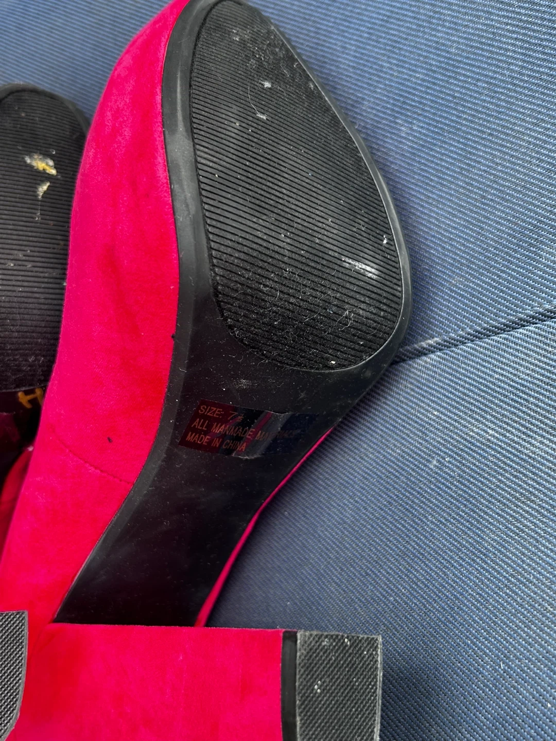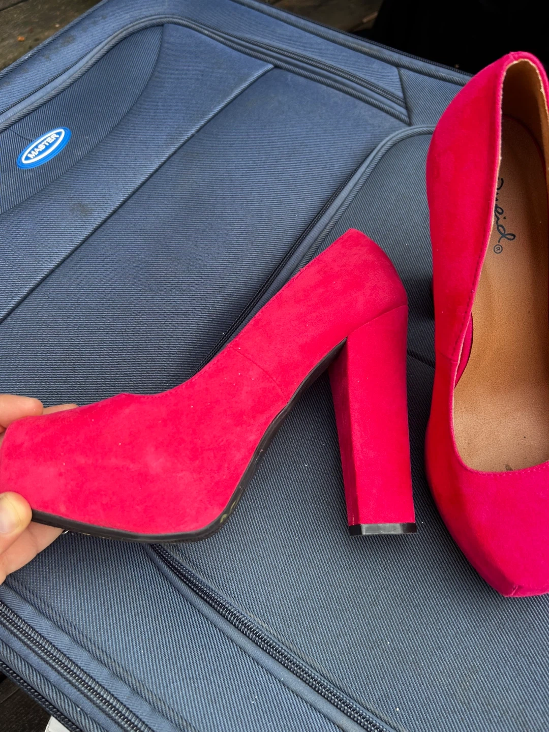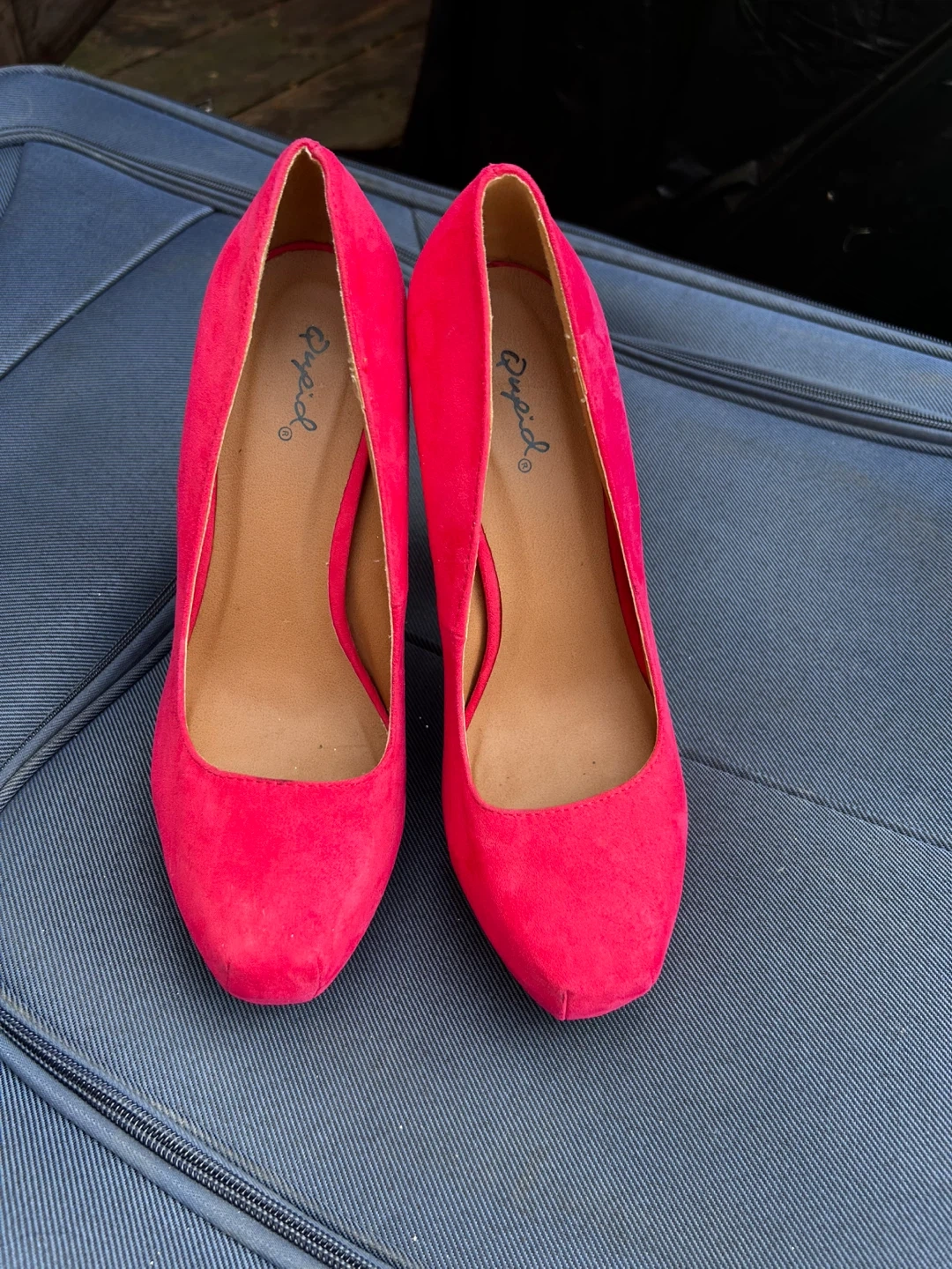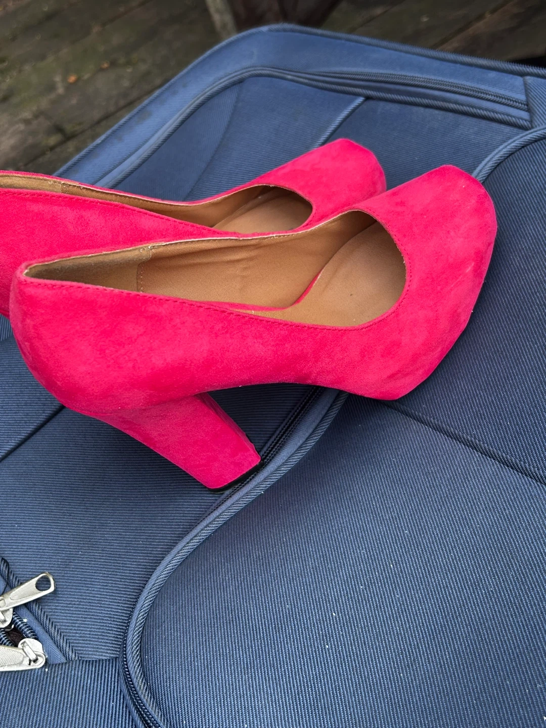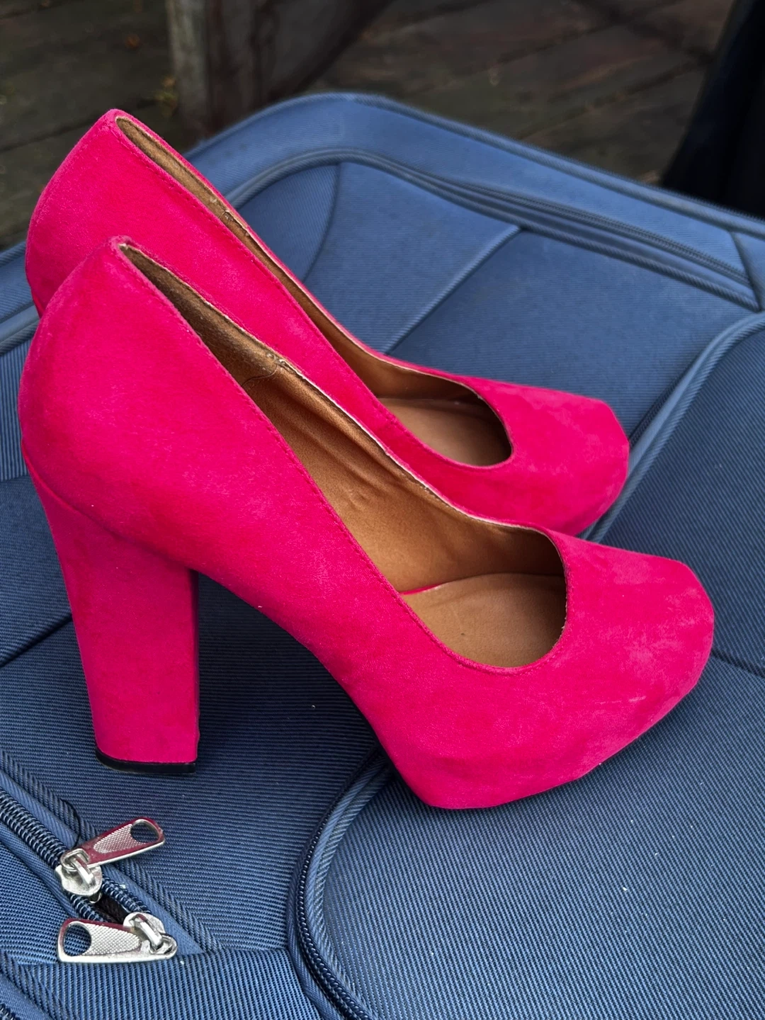 Selling a pair of Maibel heels in a vibrant pink suede! They are a size 7.5 and made of all man-made materials. These heels are sure to add a pop of colour to any outfit