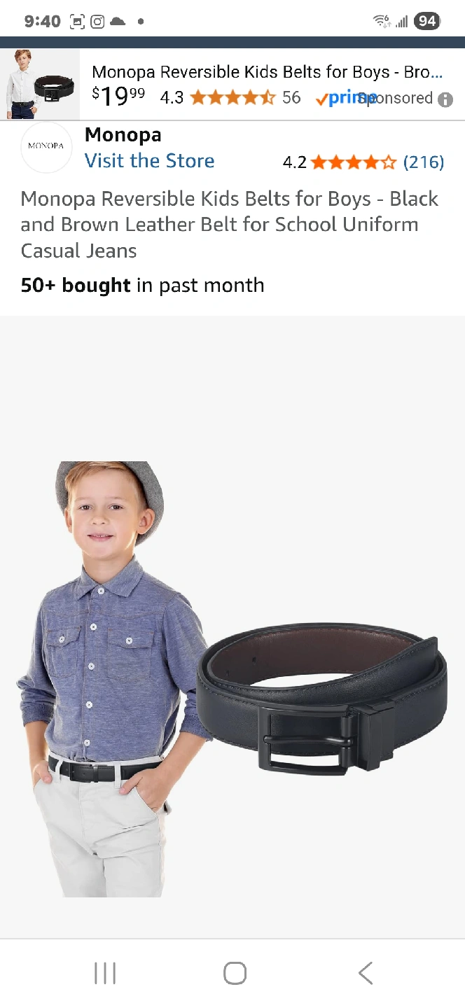 I have a new Monopa reversible belt for kids. It's black and 70cm in length. Perfect for school uniforms or casual wear!