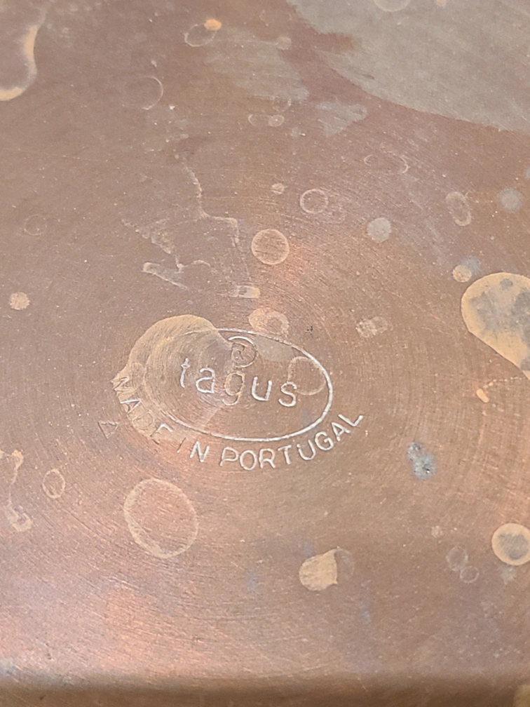 Selling a Tagus copper pan, made in Portugal. It has some signs of use, but is still in good condition for cooking. It has two brass handles. Diameter: 8" / 20.5 cm From a pet-free, smoke-free home Porch pickup near Bathurst station