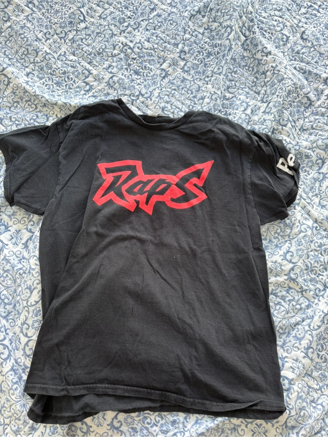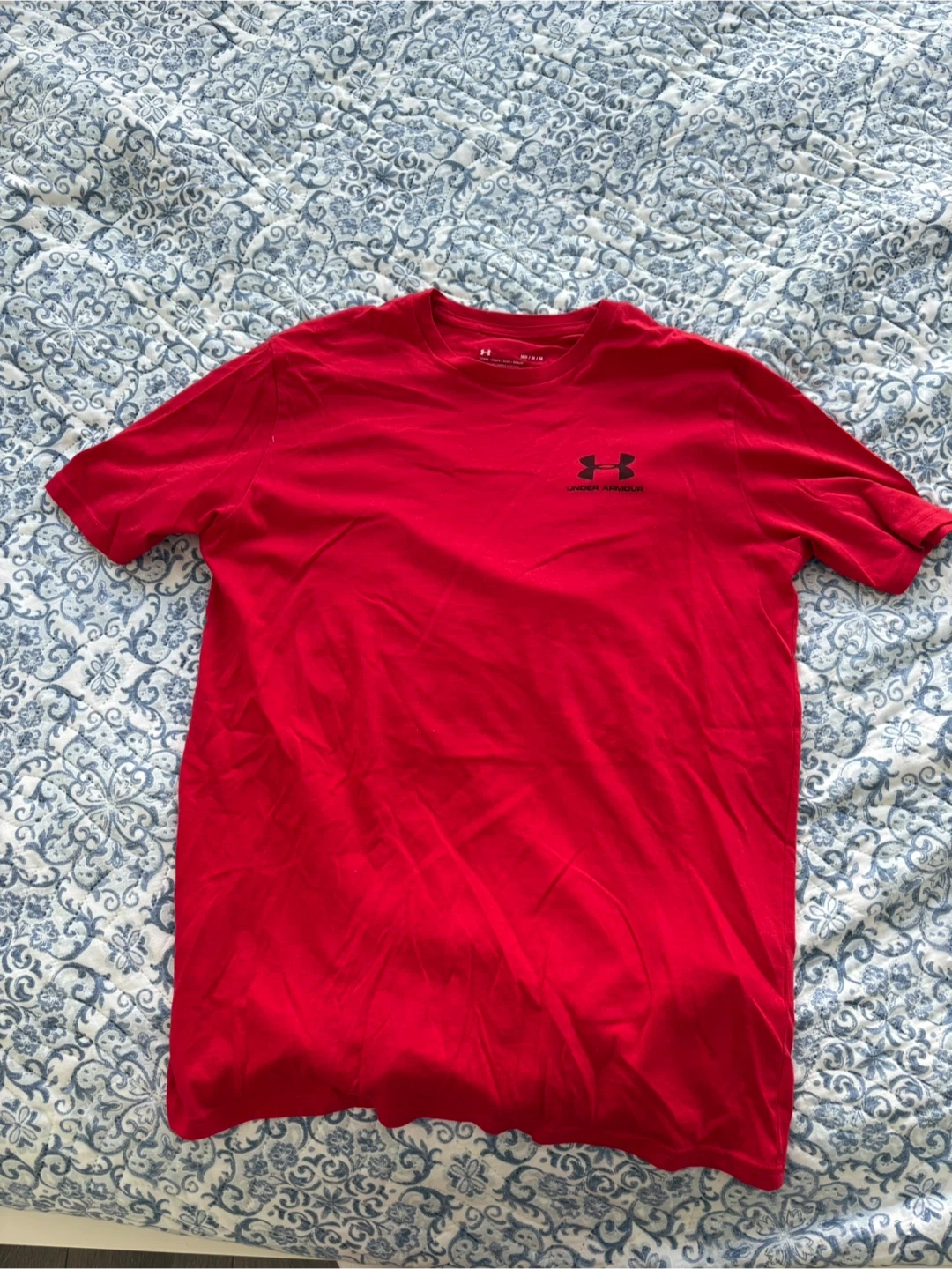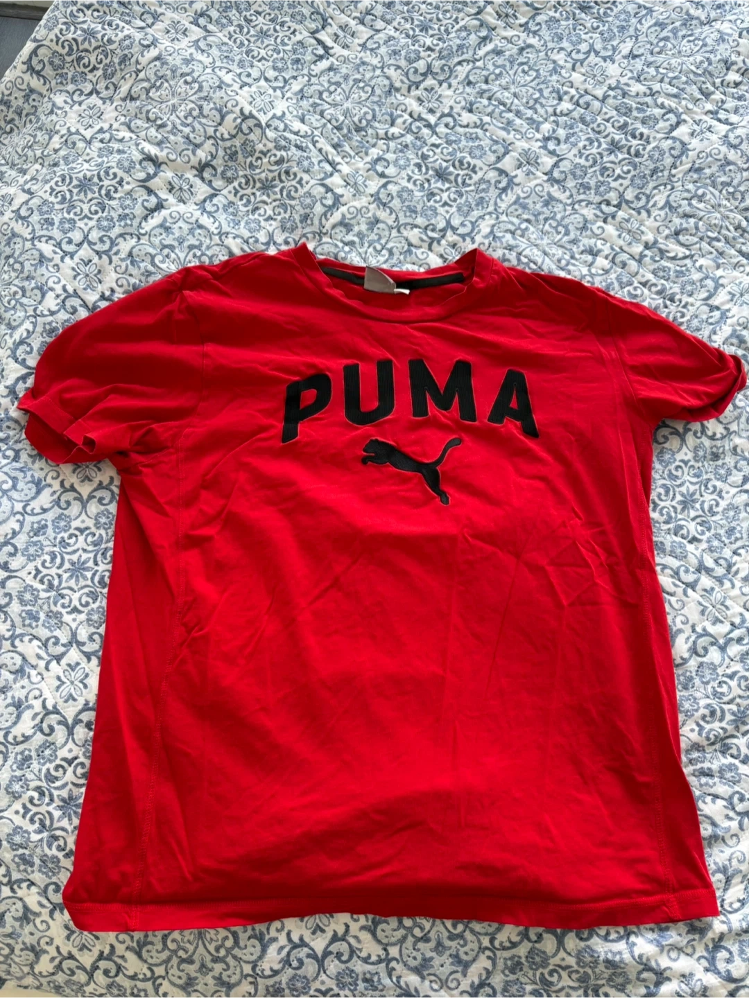 Selling a bundle of assorted t-shirts. Includes brands like Nike, Under Armour, Puma, and graphics like the Toronto Raps and Led Zeppelin. Great for casual wear!