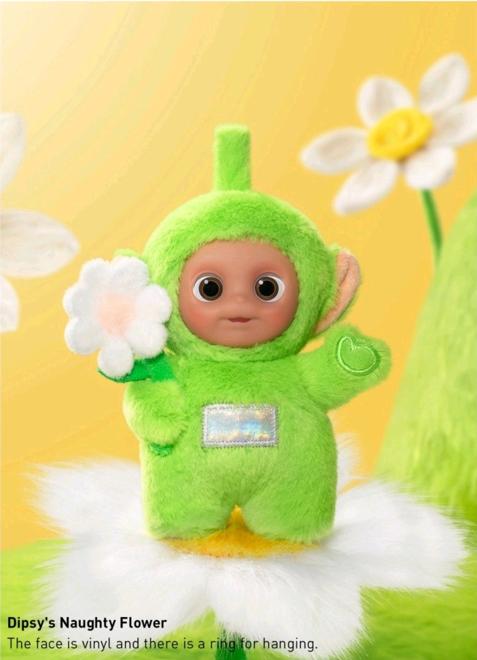 brand new in sealed box 💚Dipsy's Naughty Flower Selling a super cute Teletubbies "Say Hello" series figure from Pop Mart! This is Po's Lucky Flower, and it includes a hanging ring for display. The figure is about 13-15cm (5.12-5.91 inches) in height and made of polyester, PVC, and PET with polyester and iron wire stuffing. It's a secret edition figure, so it's extra special! Box is included