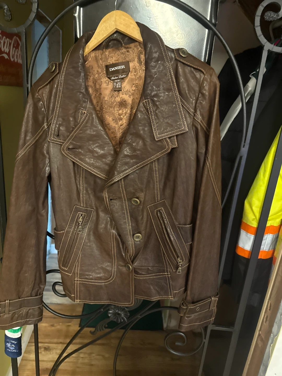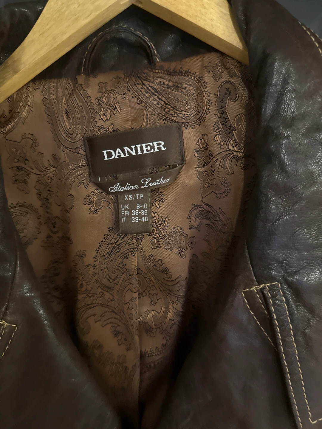 Selling a Danier Italian leather jacket in size XS. It's a beautiful brown colour with a stylish design. The jacket is in great condition and ready for a new home!