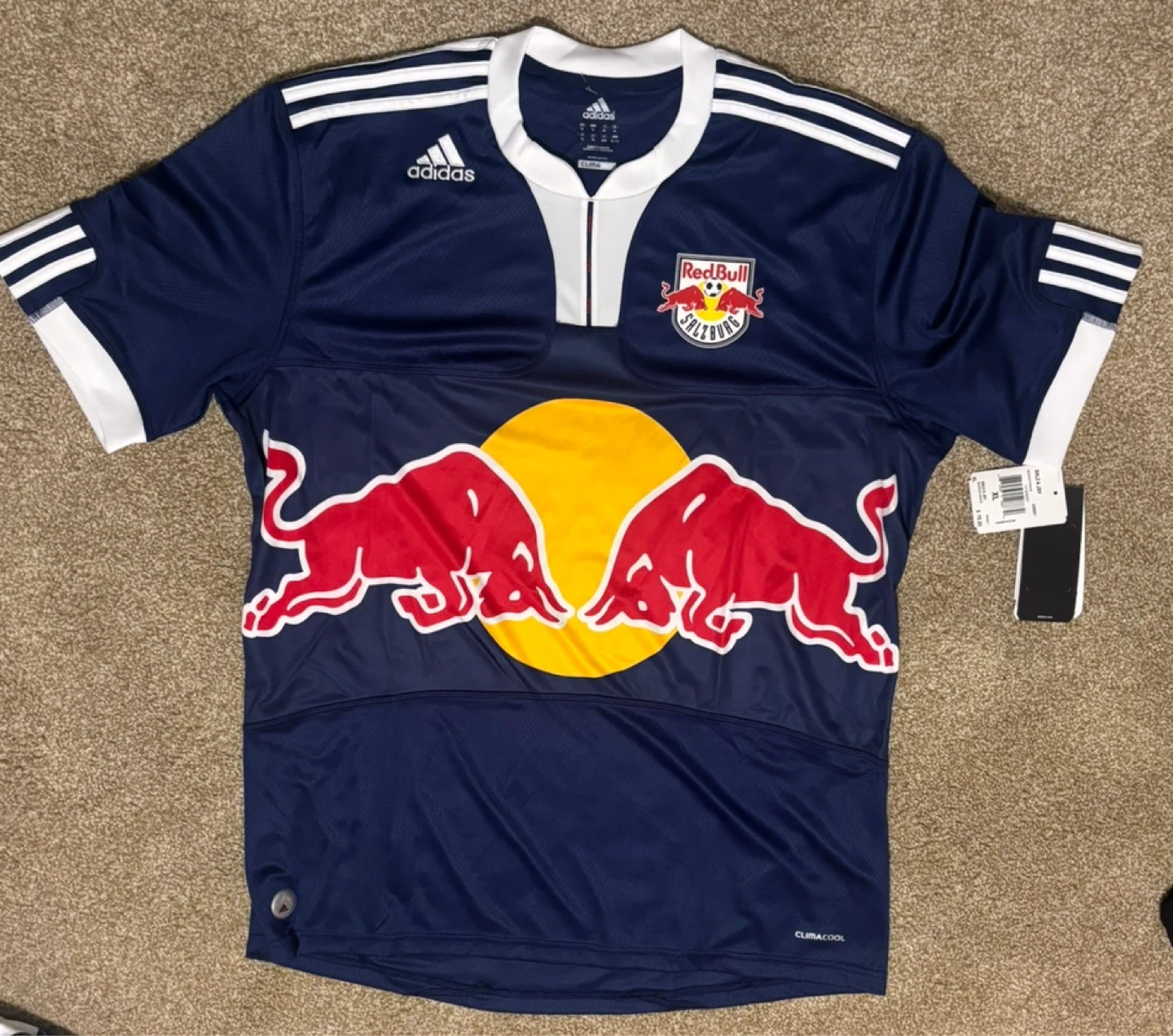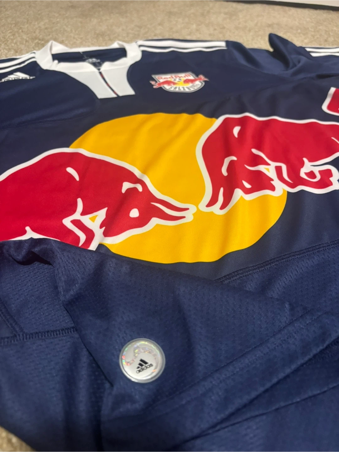 Up for grabs is an Adidas Red Bulls jersey in size XL! The jersey is new navy/white. Originally bought for $70