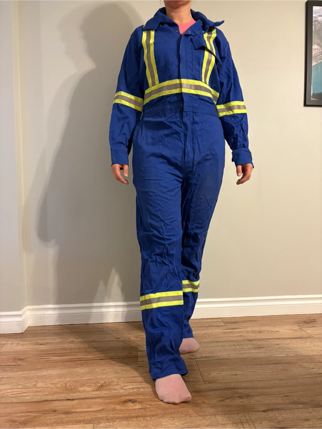 Selling a Westex UltraSoft flame-resistant coverall in size 40R. Made in Mexico from 88% cotton and 12% nylon. Features an arc rating of 12.4 (ATPV). Clean garment thoroughly, see reverse side for care instructions