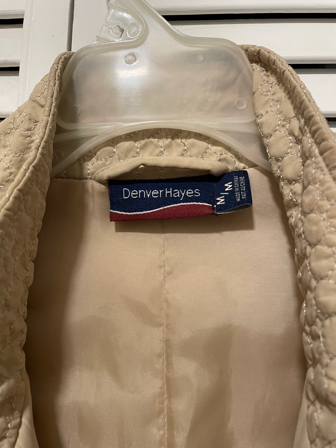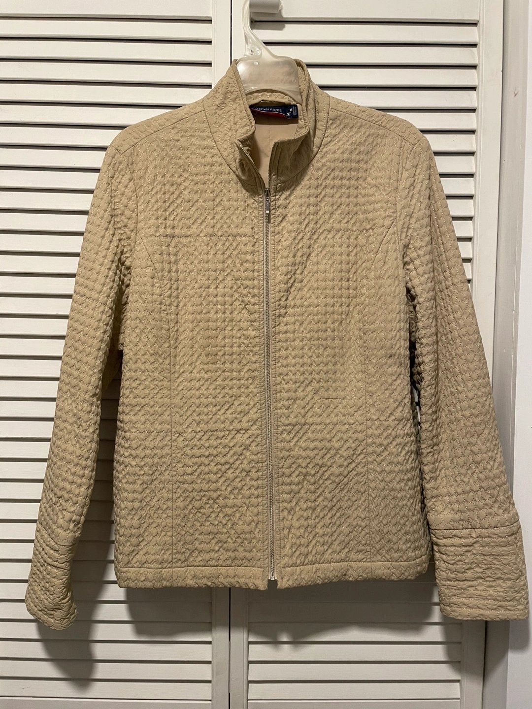 Cozy Denver Hayes jacket in size medium. It's a lovely neutral colour and perfect for layering! Great for those in-between weather days. The material is soft and comfortable, making it a great addition to your wardrobe.
