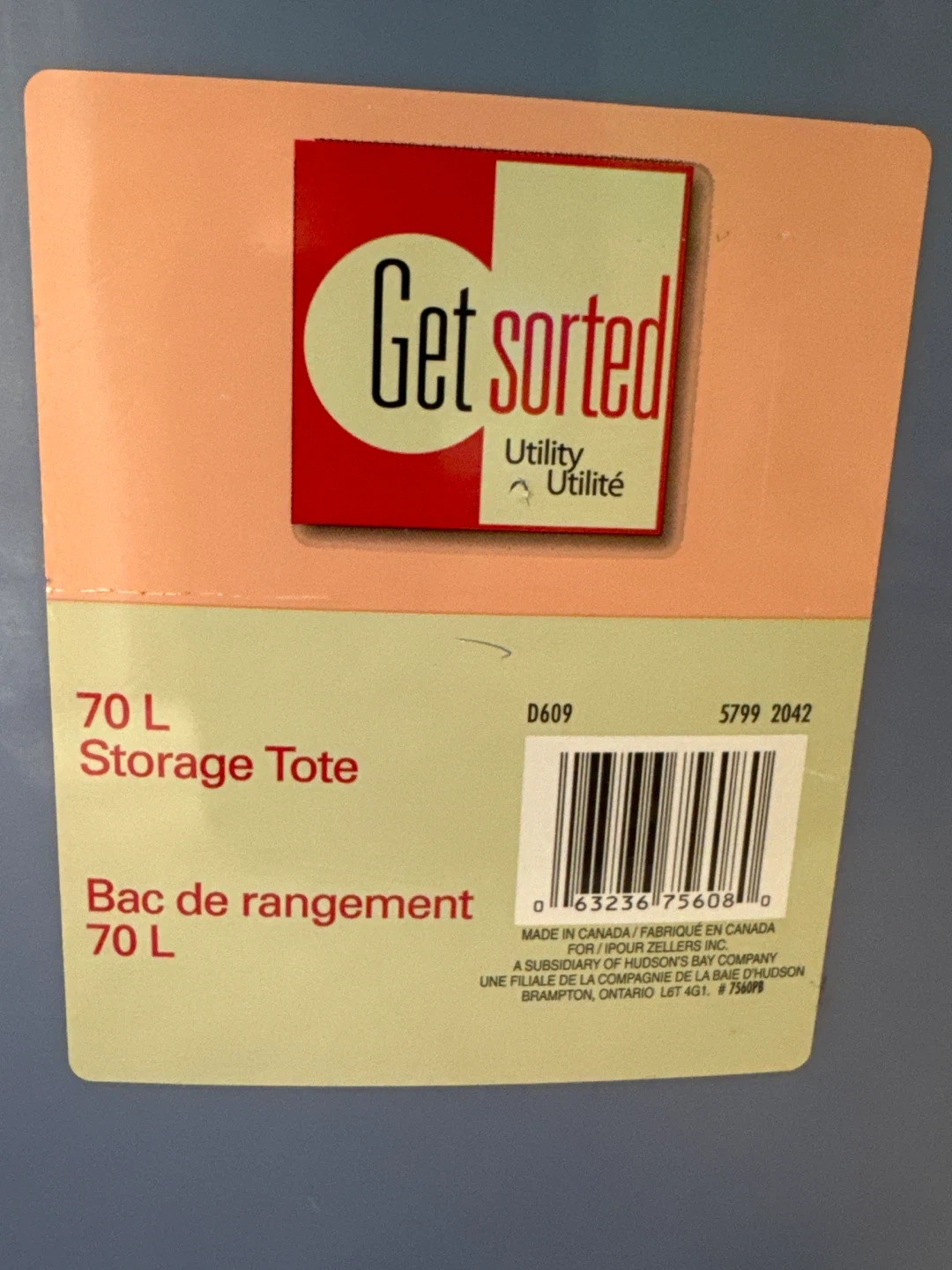 Selling 2pcs x Get Sorted 70L storage tote. It's in great shape and ready to help you organize your space! This utility tote is perfect for storing all sorts of items.
