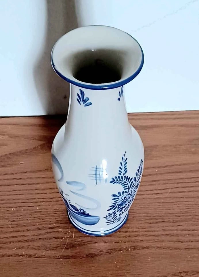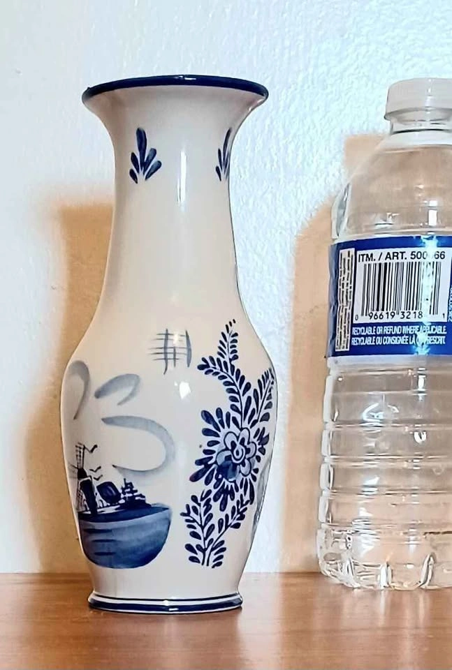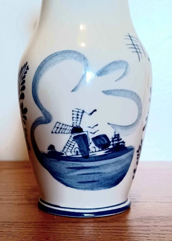 Vtg, Hand Painted , Windmill & Floral Collectible , Porcelain Delft Vase Household, Table Decor, Water Bottle For Size Reference Excellent Condition Please check out my other posts
