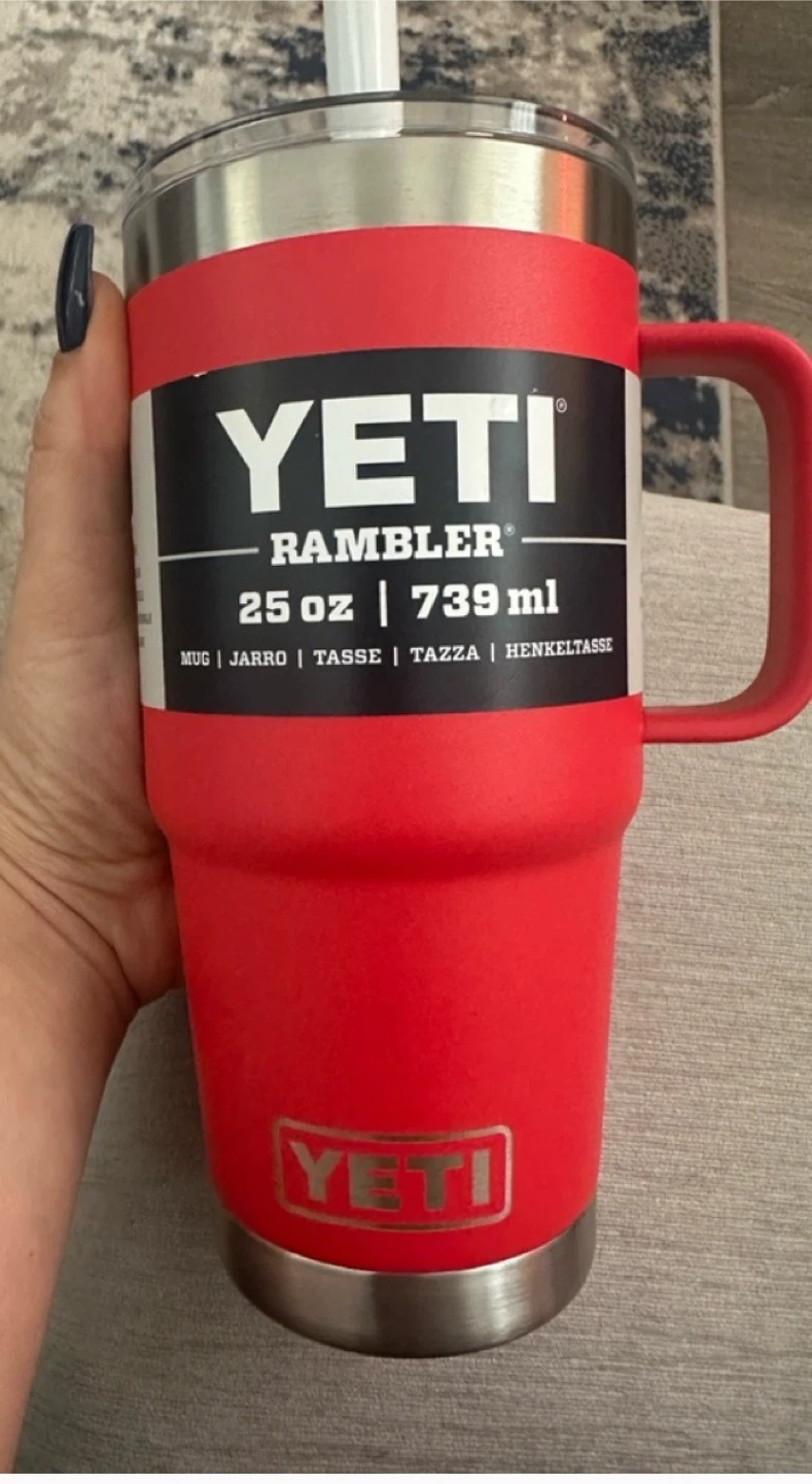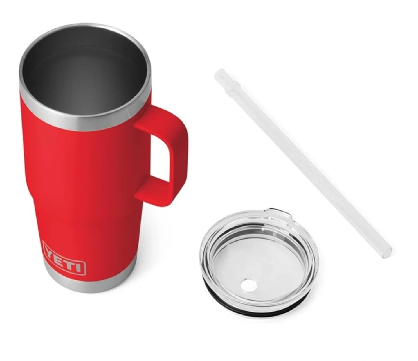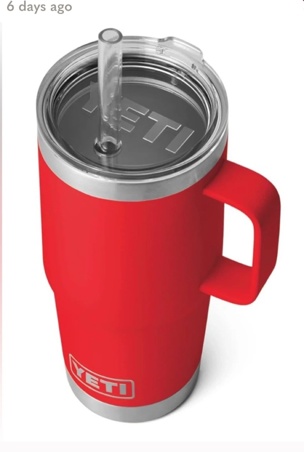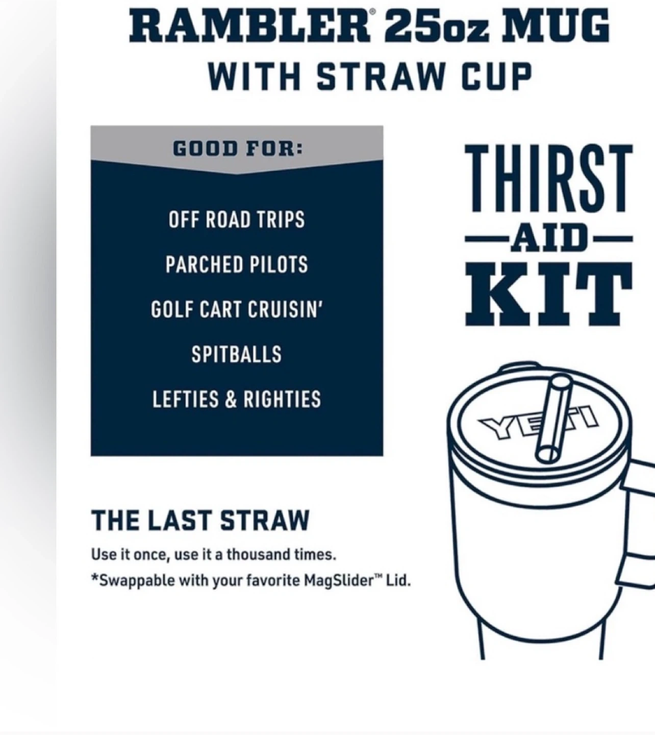 Keep your drinks at the perfect temperature with this YETI Rambler 25oz mug! It comes with a straw cup and is perfect for off-road trips, keeping pilots hydrated, golf cart cruising, or just for everyday use. The mug is red and in great condition. It's also swappable with your favorite MagSlider lid