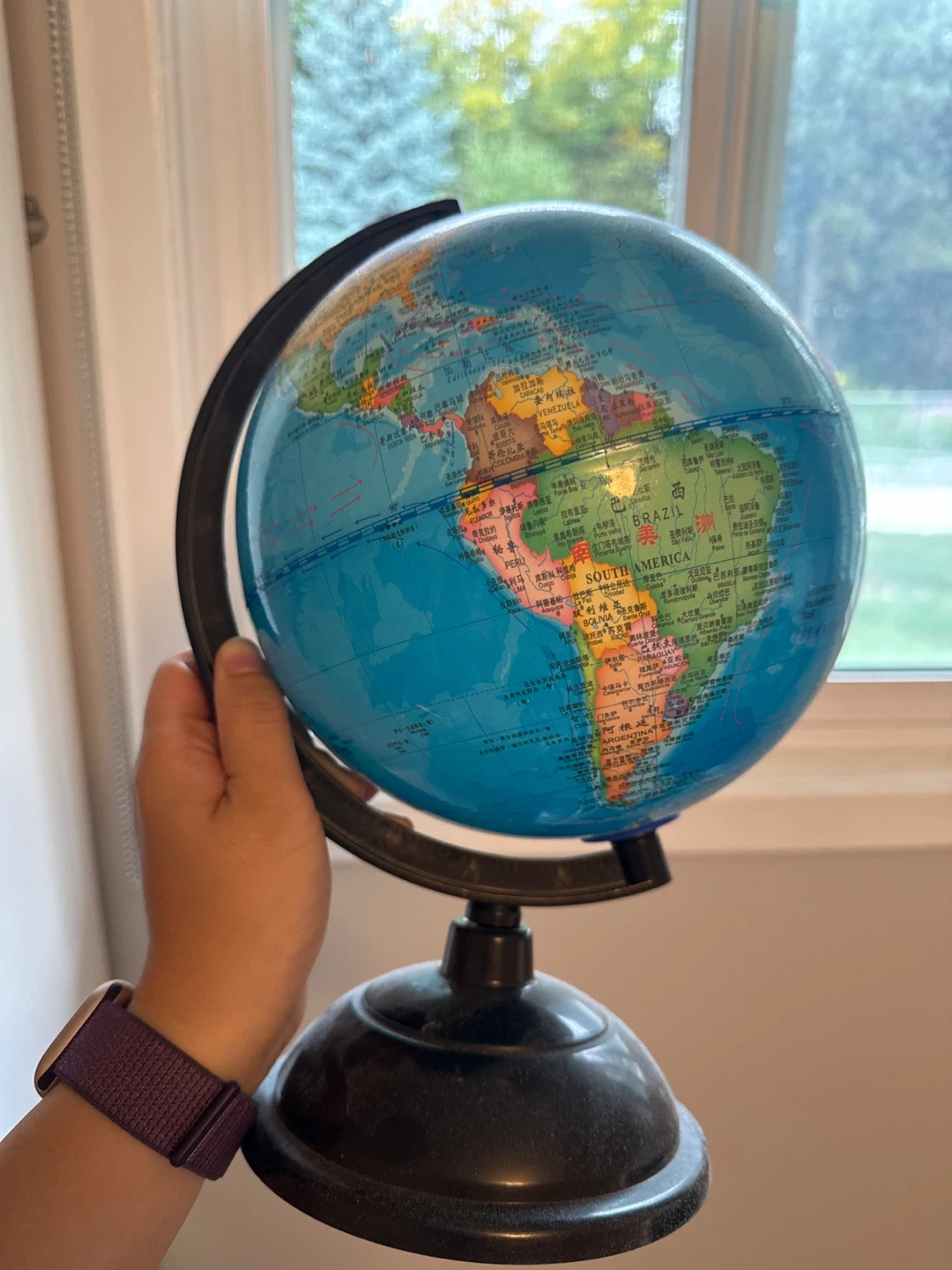 Selling a globe with a black stand. It shows the countries and continents of the world. It would be great for a child's room or for anyone who loves geography!