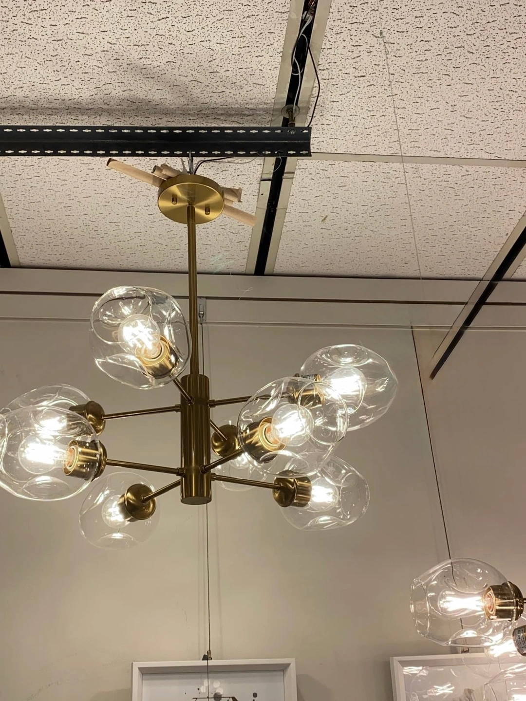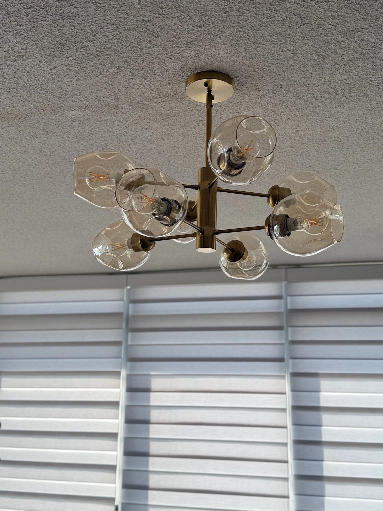 $280 OBO Modern chandelier with 8 lights Includes both Champagne & White glass covers so you can switch up the look Move-out Sale Click on my profile to see more items on sale Everything needs to go by Sept 28th!