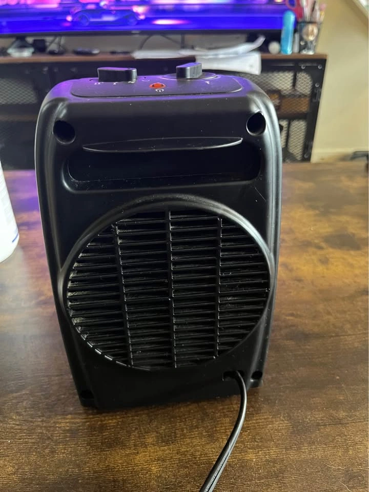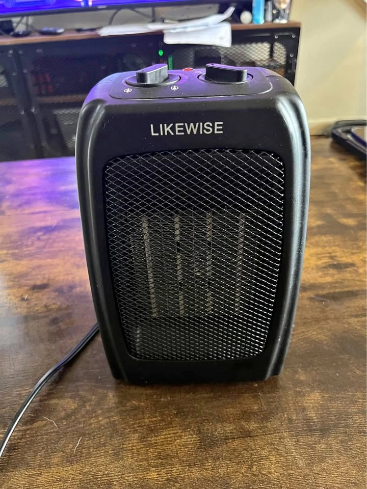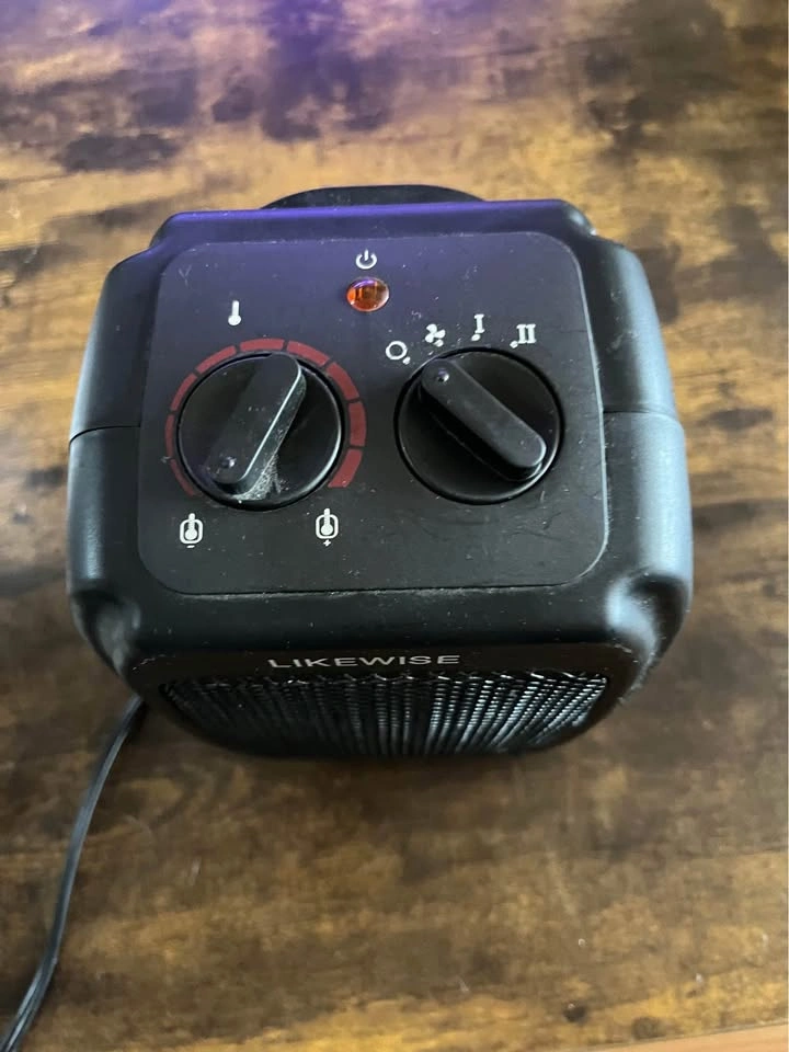Likewise mini portable space heater. Multiple settings including fan. Used but in great condition. Size 9inch x 5.5 inch x 5inch.