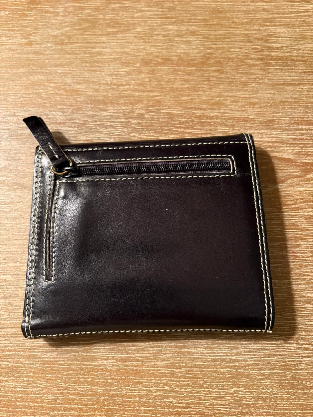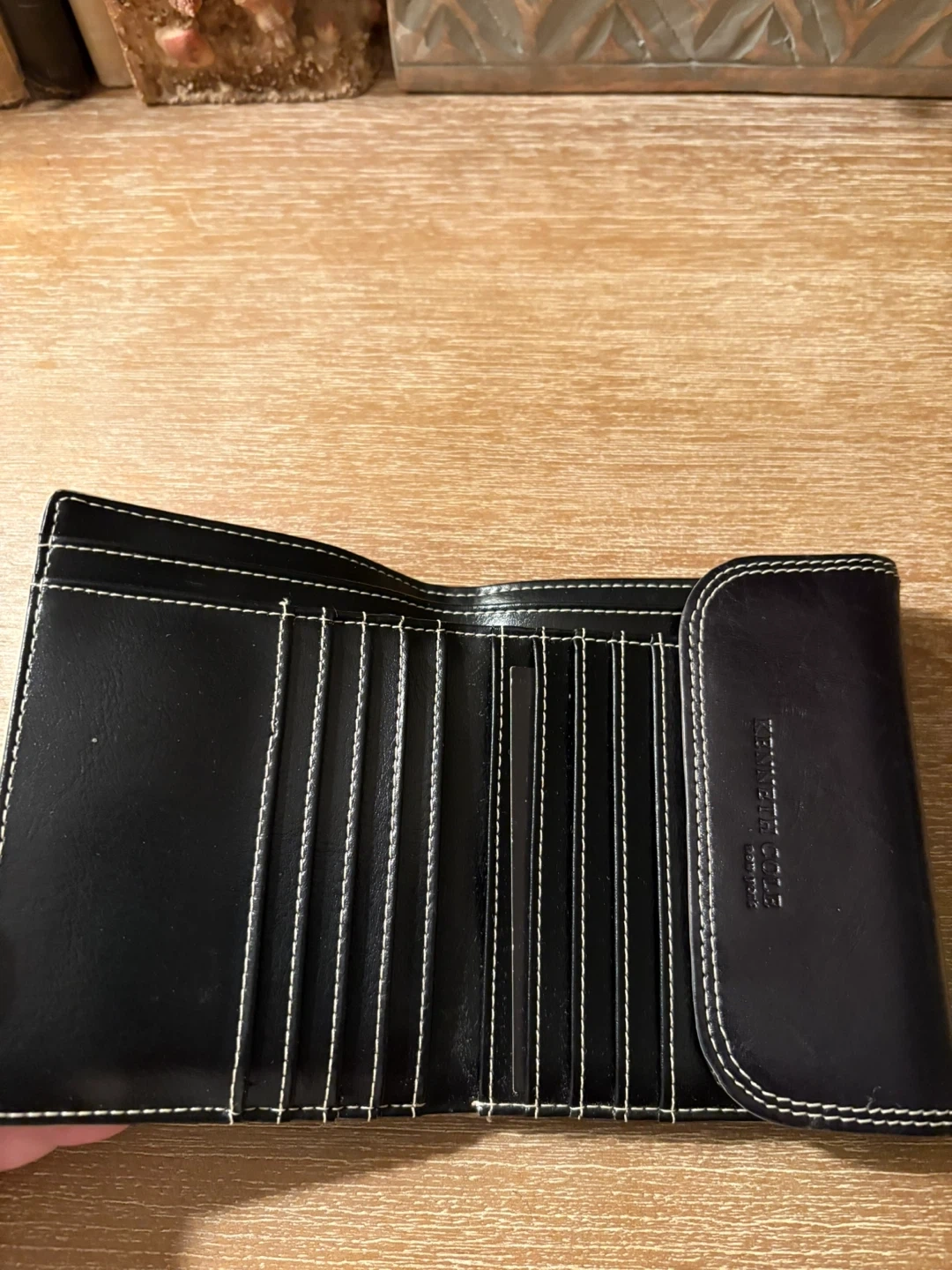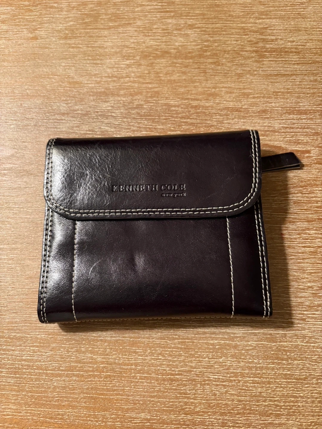 This is a gently used Kenneth Cole New York wallet in black leather. It features multiple card slots and a zippered compartment for coins and bill slot as well. A stylish and practical accessory! Cash only