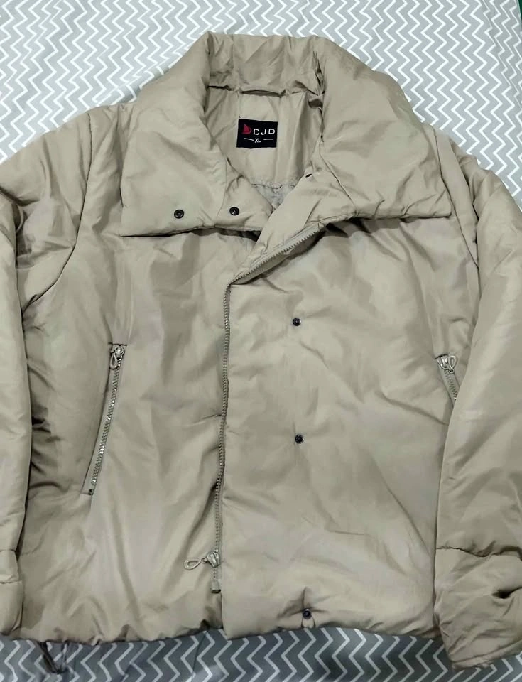 Warm beige puffer jacket from CJD. Quilted design with front zipper and snap buttons Two zippered side pockets High collar for extra warmth Comfortable fit, good for winter and cold weather Clean and in good condition Price: $20 π Pickup near Major Mackenzie Dr & Cityview Blvd, Vaughan