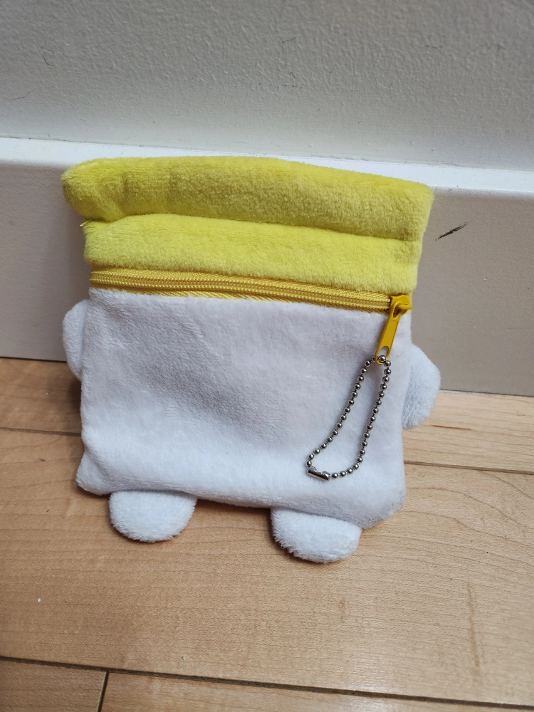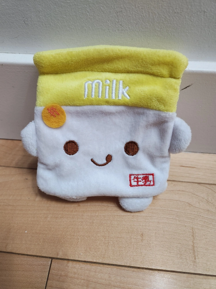 This is an adorable milk carton shaped coin purse. It's made of soft plush material, perfect for keeping your change safe and adding a touch of cuteness to your everyday life. Comes from a smoke and pet free home.