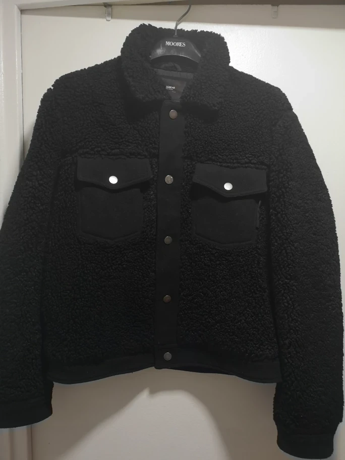 Selling a cozy black sherpa jacket from Pull&Bear. It's a size large and in great condition. Perfect for staying warm during the colder months!