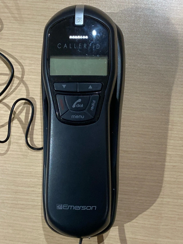 Selling a used Emerson telephone with Caller ID. This corded phone is perfect for anyone looking for a reliable home phone. The phone is in good working order and is black. Specifications: * Brand: Emerson * Model: EM2517 * Type: Corded Phone * Features: Caller ID * Colour: Black I'm asking $20. If the ad is still up, that means the phone is still available!
