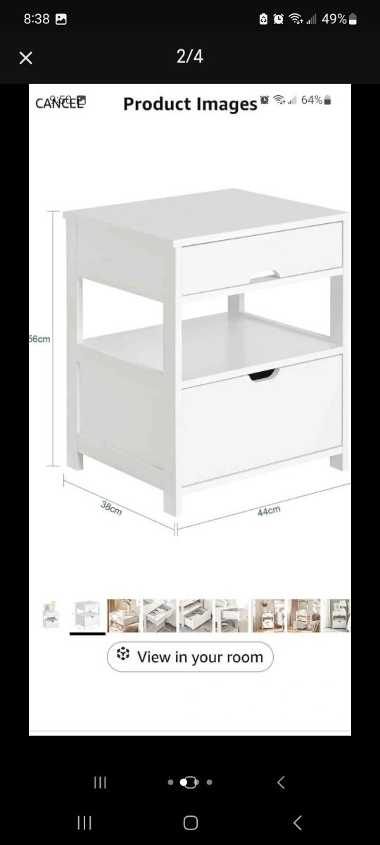 Selling a SoBuy white bedside table with drawers. This nightstand is perfect for adding a touch of simplicity to your bedroom. Key Features: - Colour: White - Dimensions: 56cm (height) x 38cm (width) x 44cm (depth) - Features two drawers and an open shelf for storage - Originally bought for $245.99