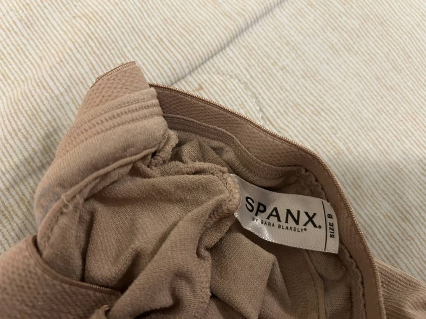 Selling a pair of Spanx tights in beige, size B. They're in good condition and ready for a new home!