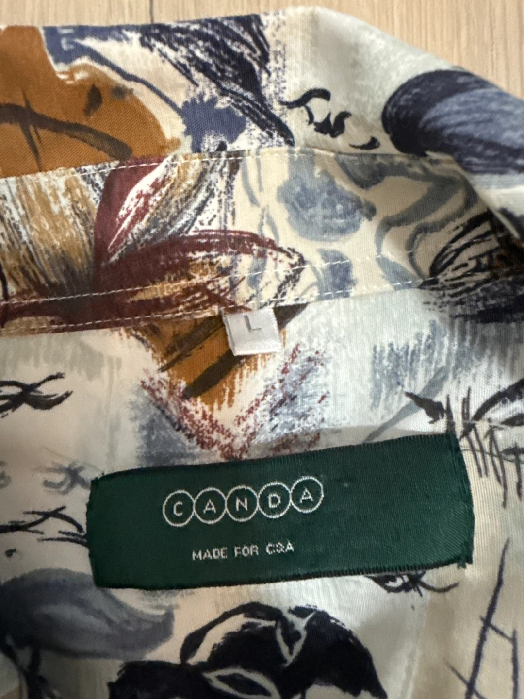 Selling a gently used Canda Made for C&A shirt in size L. It features a unique floral pattern that's sure to stand out. Perfect for adding a touch of style to your wardrobe