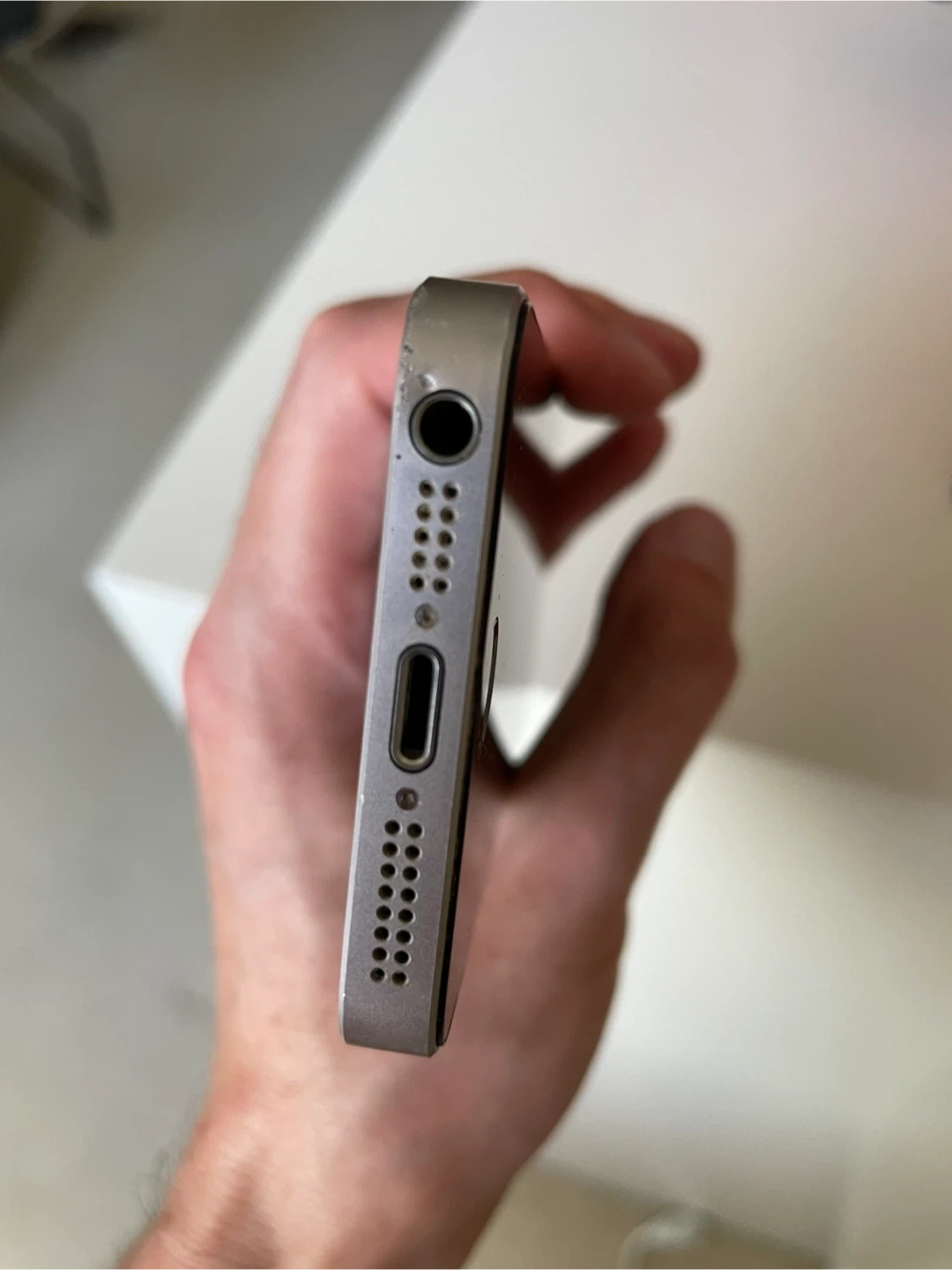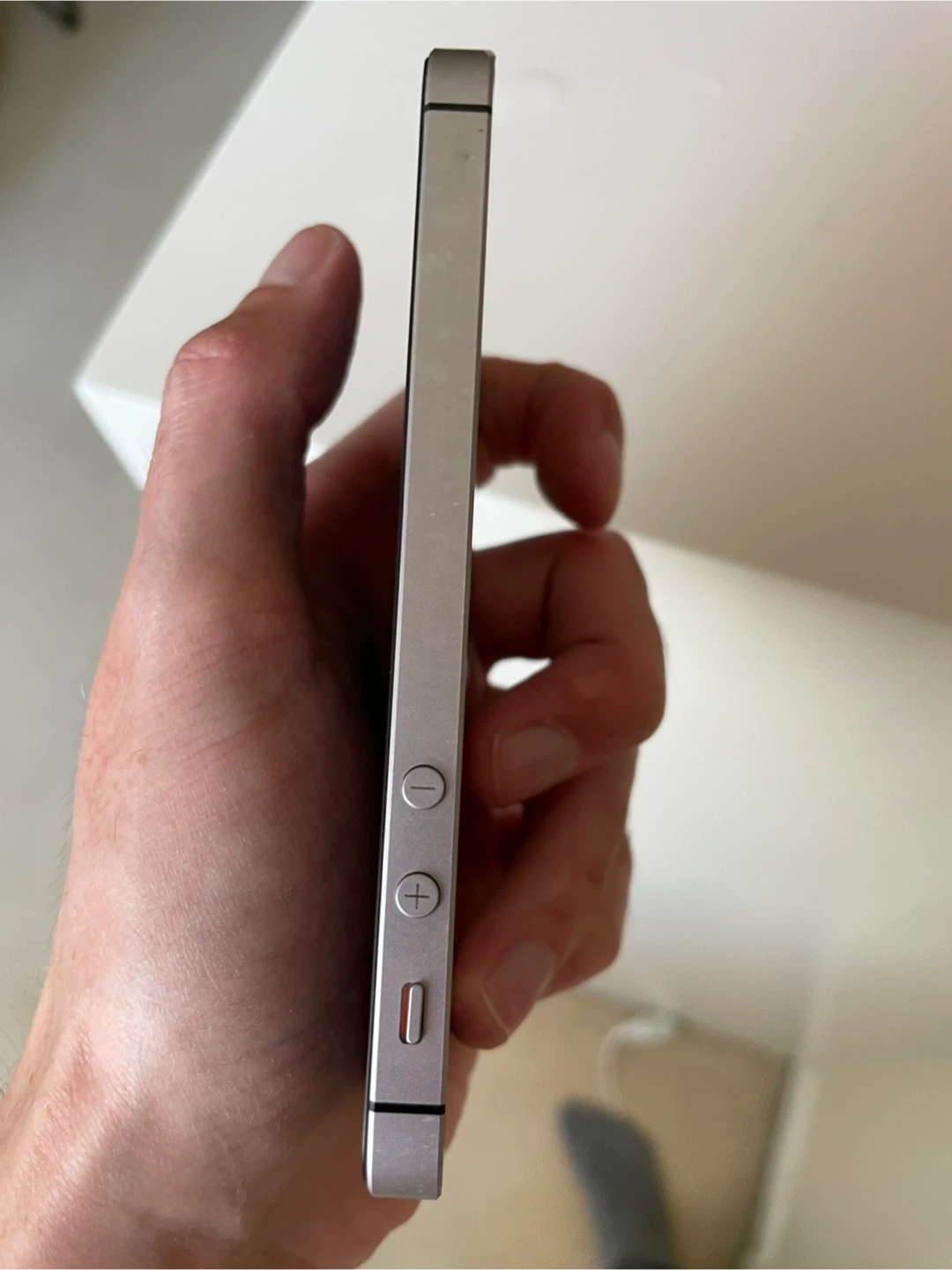 Selling a used iPhone SE (1st generation) in silver, 32GB. It's in good condition with most wear at the back and some edges (as shown in the photos). Still working well. Screen is scratchless. Completely reseted to initial settings and all content erased. No box nor charger (lightning) unfortunately. https://support.apple.com/en-ca/112005 for more info.