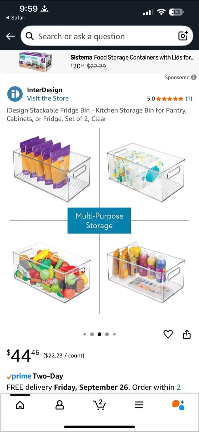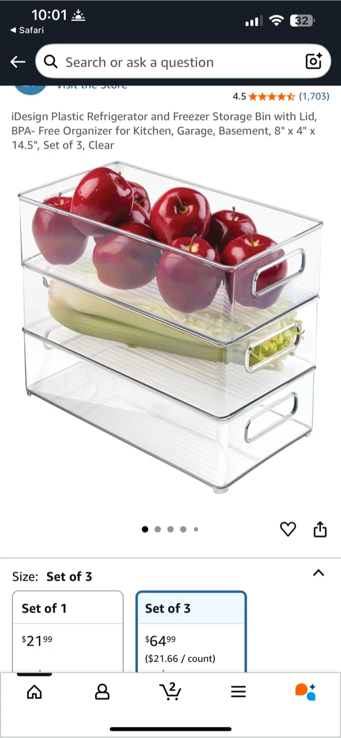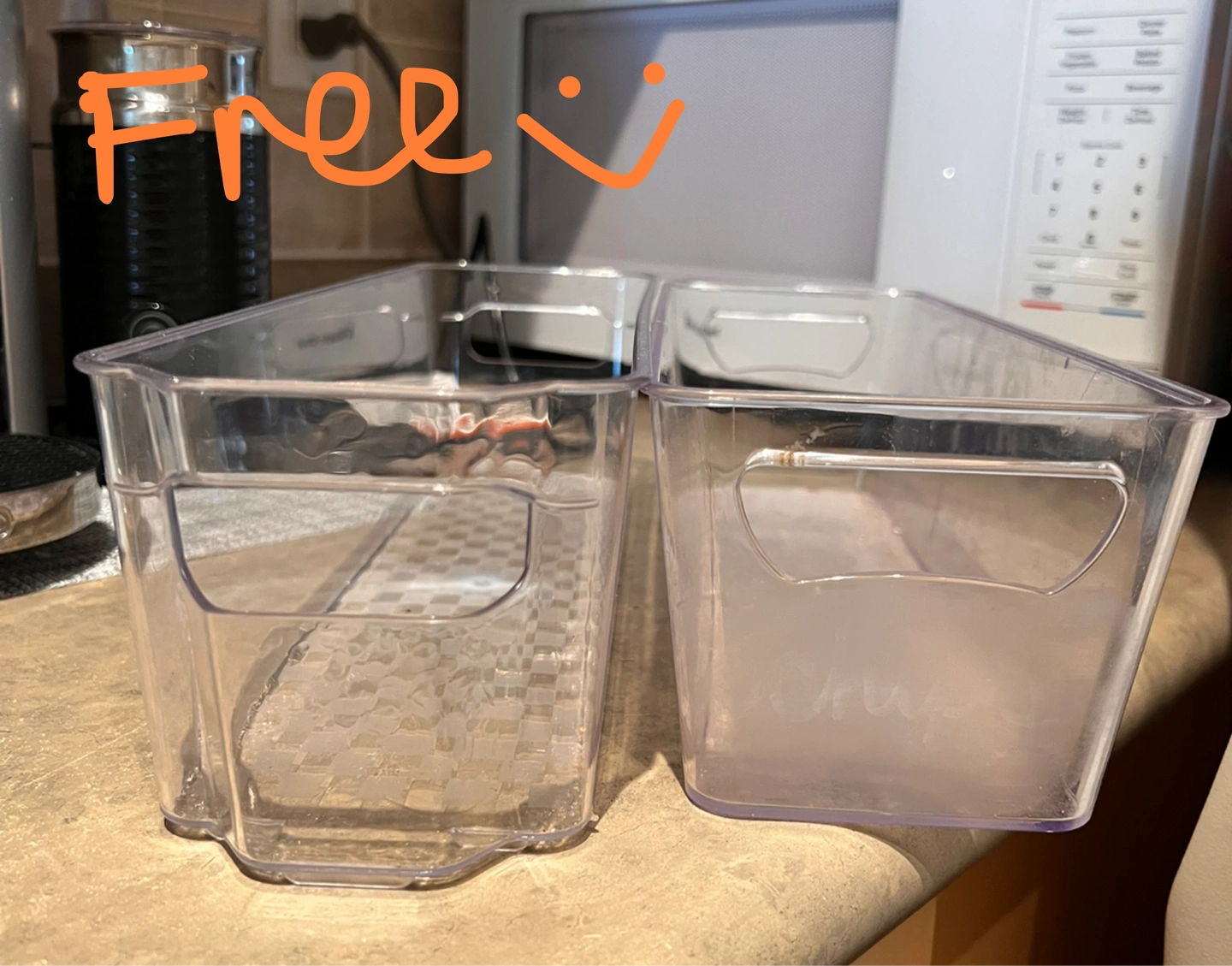 Selling a set of 12 stackable fridge/pantry bins + some freebies!!! $10 each or $110 for the whole set. These clear bins are perfect for organizing your pantry, cabinets, or fridge. They're in great condition and ready to help you keep your kitchen tidy. Some have labels that can be removed. You can use a white chalk sharpie to label the other boxes. They are in perfect condition. No cracks. They are sturdy and durable not like the cheap knockoffs. They have been washed. Some aren’t pictured but are part of the set 😊. GIVING AWAY FOR FREE 💵 as a bundle: - 3 small pantry containers (pictured) - 2 Medium pantry containers (not pictured but coming) - 2 large pantry containers for pasta (not pictured but coming) - 1 tray for sodas 🥤 etc - 2 trays for other containers (pictured at the end) Feel free to ask me questions. Price is firm and cash only. Dimensions 📏 & Retail Price: Small version one: iDesign Plastic Refrigerator and Freezer Storage Bin with Lid, BPA- Free Organizer for Kitchen, Garage, Basement, 8" x 4" x 14.5", Set of 3, Clear for $64.99 + tax on Amazon ($129.98 + tax in total) Bigger version: iDesign Plastic Storage Organizer Bin with Handles for Kitchen, Fridge, Freezer, Pantry, and Cabinet Organization, BPA-Free, Large $19.00 + tax on Amazon each. ($114 + tax In total) This price is a bargain!!! Check it out for yourself: I’ve shared a Brand Store on Amazon with you. https://www.amazon.ca/stores/iDesign/page/D96F46BF-ACFC-498E-9327-703229ACE0BD?is_byline_deeplink=true&deeplink=0731E1AC-EAE5-4278-AB7D-A874432B275A&redirect_store_id=D96F46BF-ACFC-498E-9327-703229ACE0BD&lp_asin=B00CS8DT00&ref_=cm_sw_r_apin_ast_store_FXZ082YRX5B2VH0FDGT9&store_ref=bl_ast_dp_brandLogo_sto