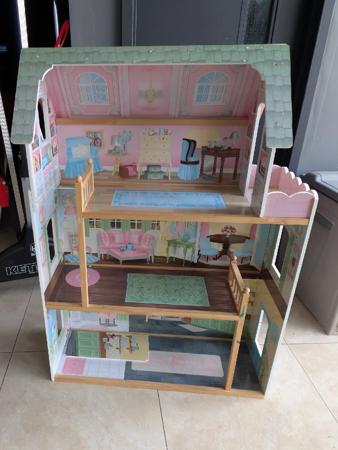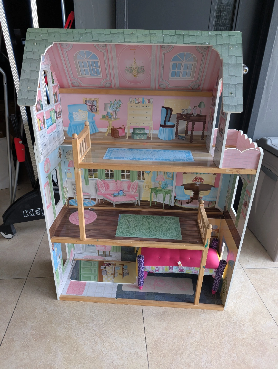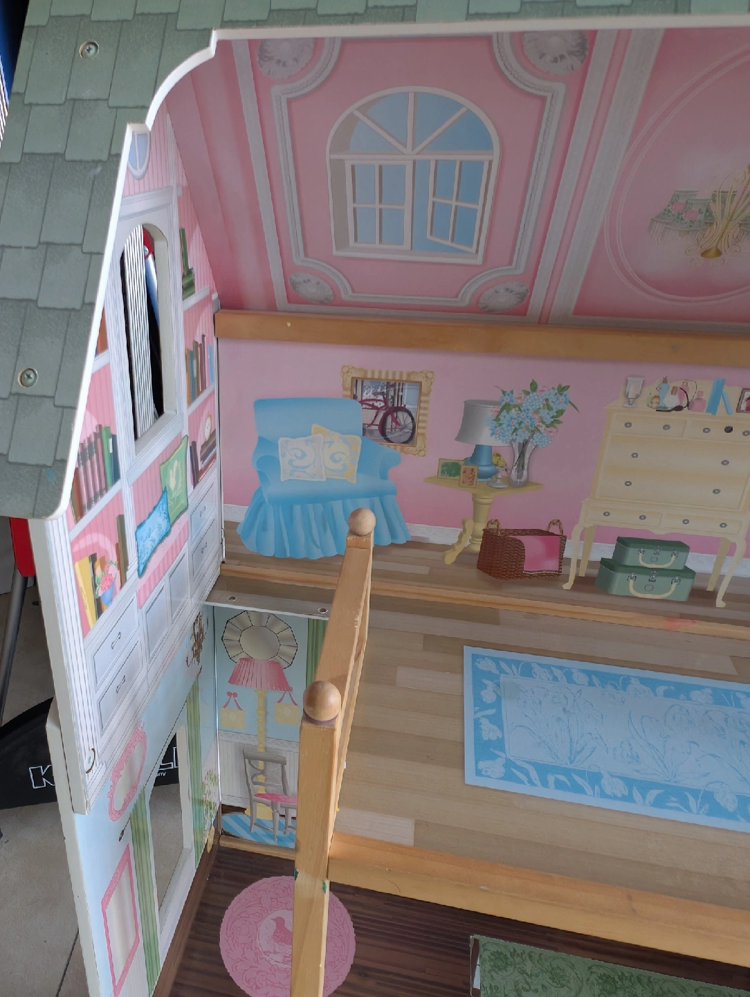 KidKraft Large Dollhouse Selling this large scale doll house by KidKraft. Dollhouses around this size retail for ~$150 minimum on the KidKraft website (approximately 4 feet tall and 3 feet across). Asking just $25 OBO. I believe it is missing stairs but is otherwise complete to my knowledge. Doesn't include any furniture or dolls. Has some minor scuffs and marks, but still has plenty of joy to give! The biggest flaw is a small section of the roof that is peeling but it's on the back. Full disclosure: This item was donated to my community center as part of a fundraiser. All the funds raised will be donated to the centre!