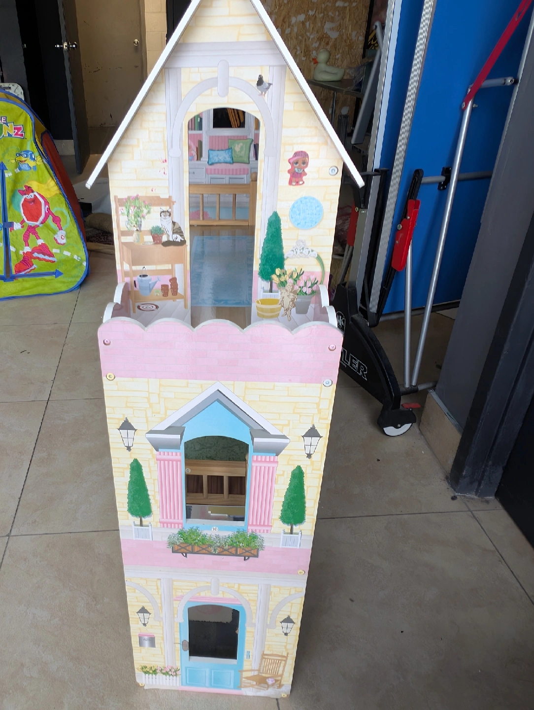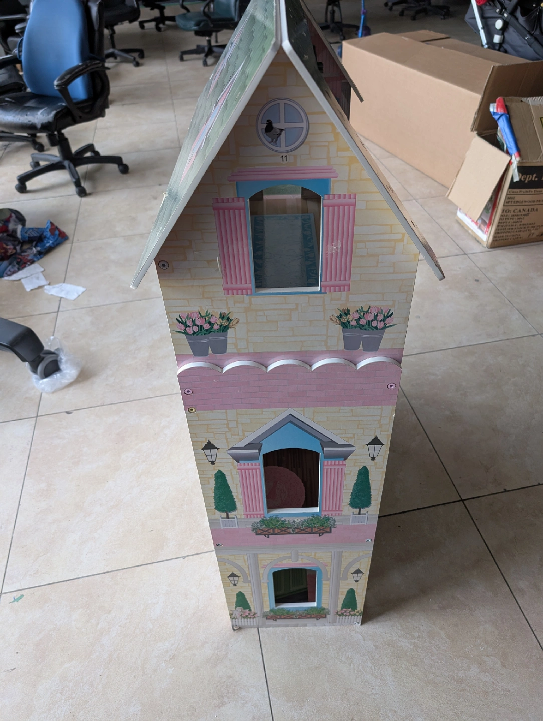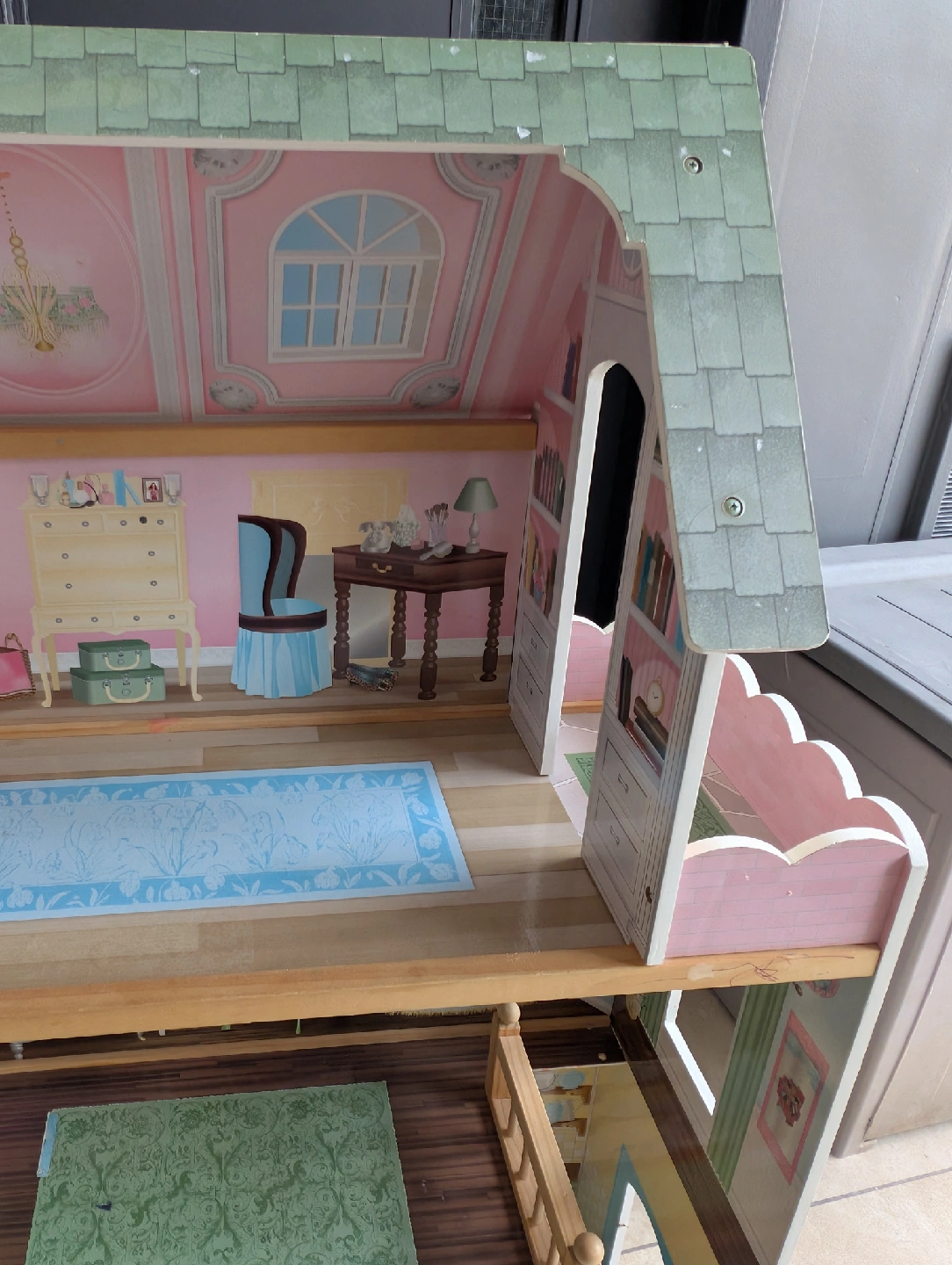 KidKraft Large Dollhouse Selling this large scale doll house by KidKraft. Dollhouses around this size retail for ~$150 minimum on the KidKraft website (approximately 4 feet tall and 3 feet across). Asking just $25 OBO. I believe it is missing stairs but is otherwise complete to my knowledge. Doesn't include any furniture or dolls. Has some minor scuffs and marks, but still has plenty of joy to give! The biggest flaw is a small section of the roof that is peeling but it's on the back. Full disclosure: This item was donated to my community center as part of a fundraiser. All the funds raised will be donated to the centre!