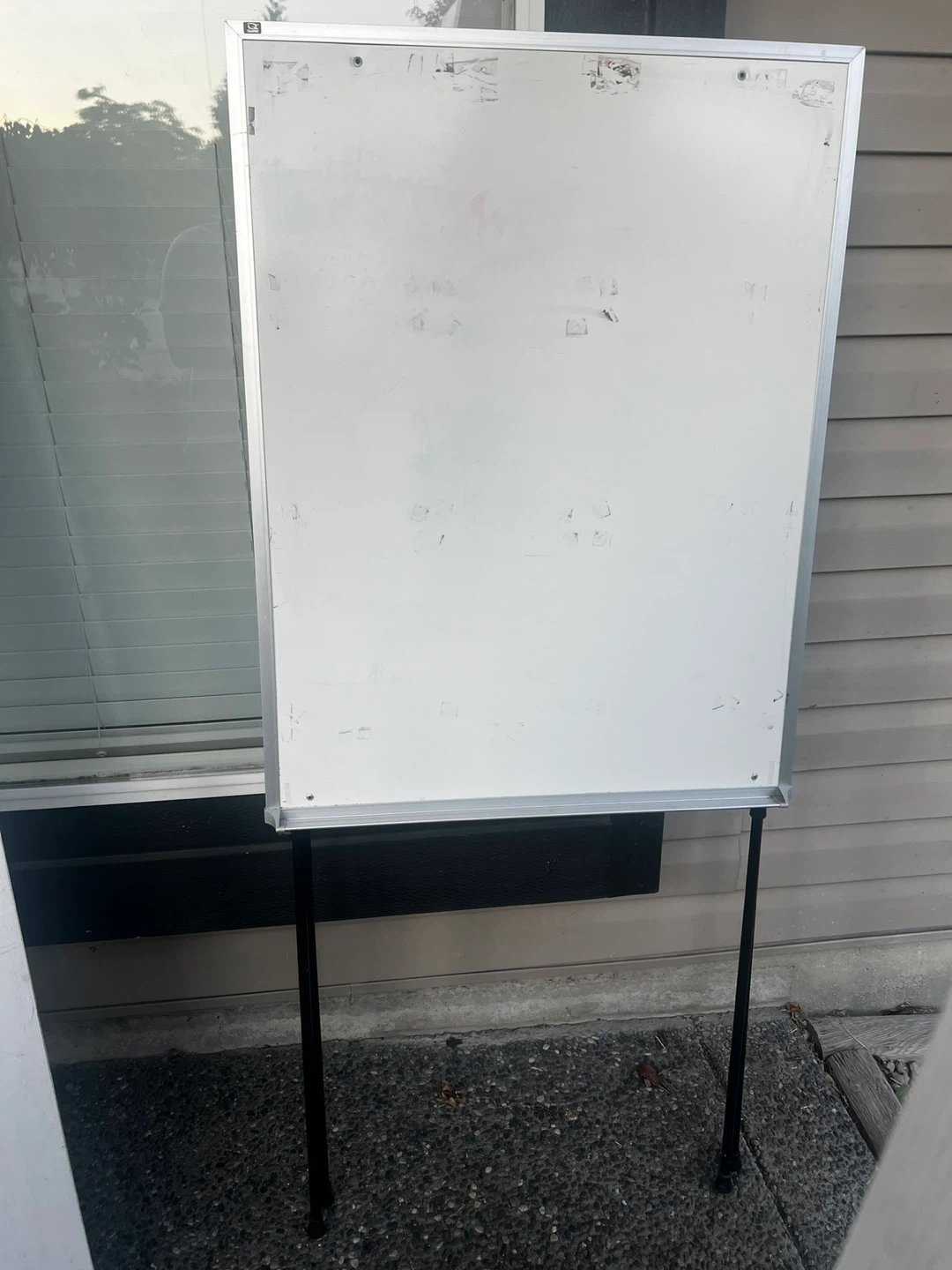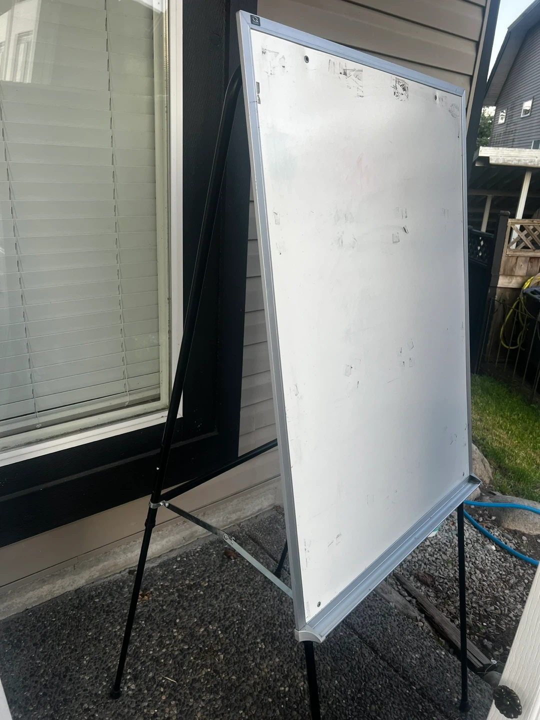 • Large magnetic whiteboard, suitable for home, office, or classroom use • Comes with a sturdy stand, easy to set up and move around • Ideal for teaching, meetings, presentations, or as a family message board • Lightweight and portable Approx. Size: 3ft x 2.5ft Condition: Gently used (some marks, does not affect use) Pickup from 150 and 69 avenue