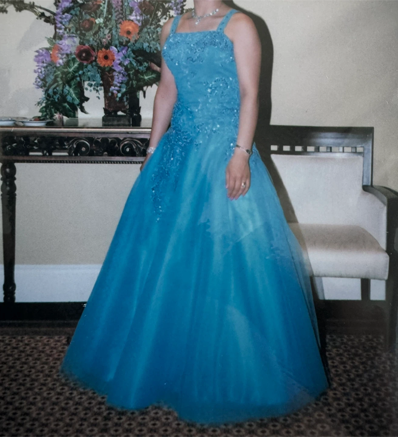 Turquoise, beaded A line dress. Used couple of times for few hours.
