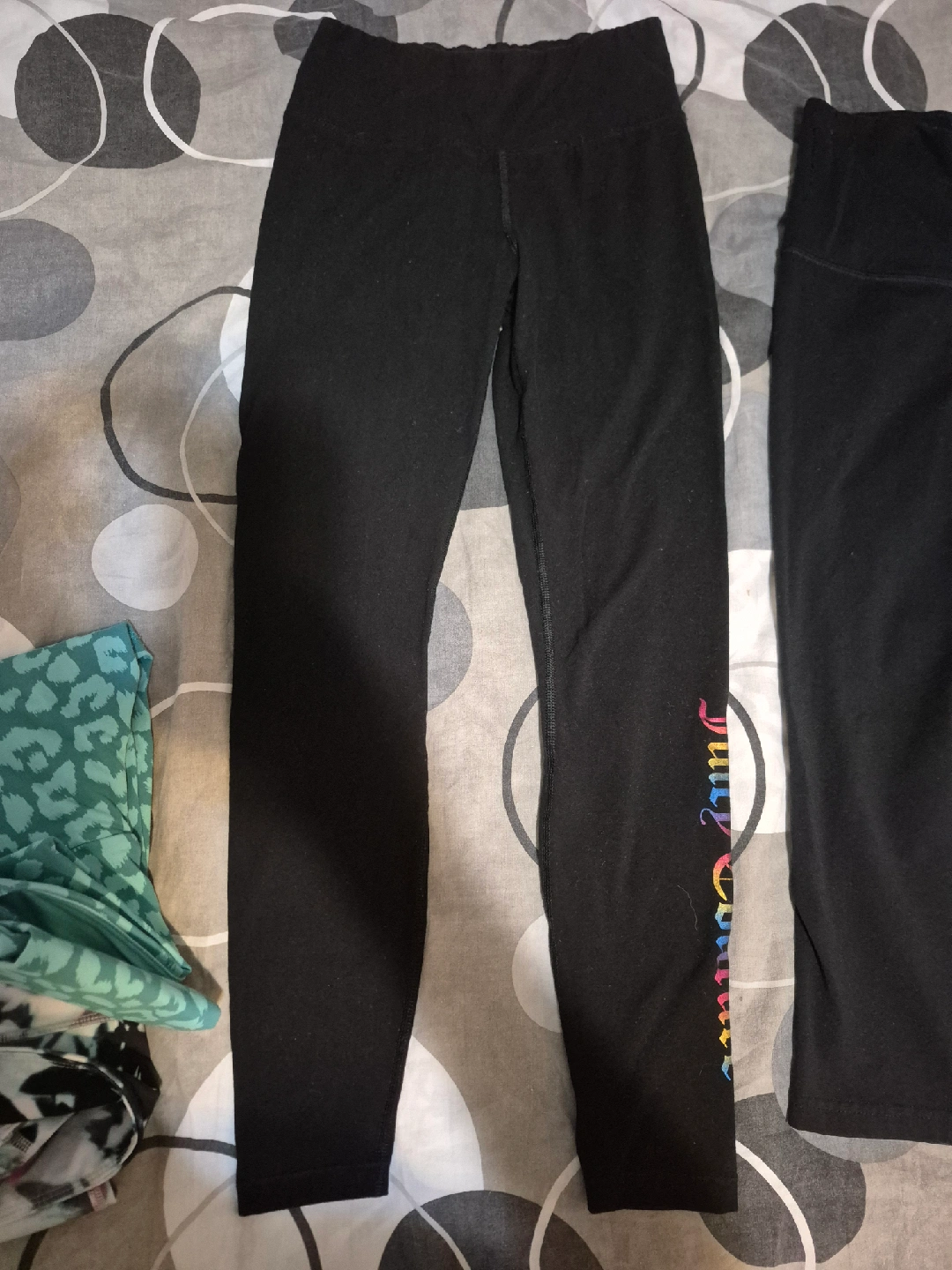 Selling a pair of Juicy Couture leggings in black! They have the Juicy Couture logo in rainbow colours on one leg. Good condition and ready for a new home