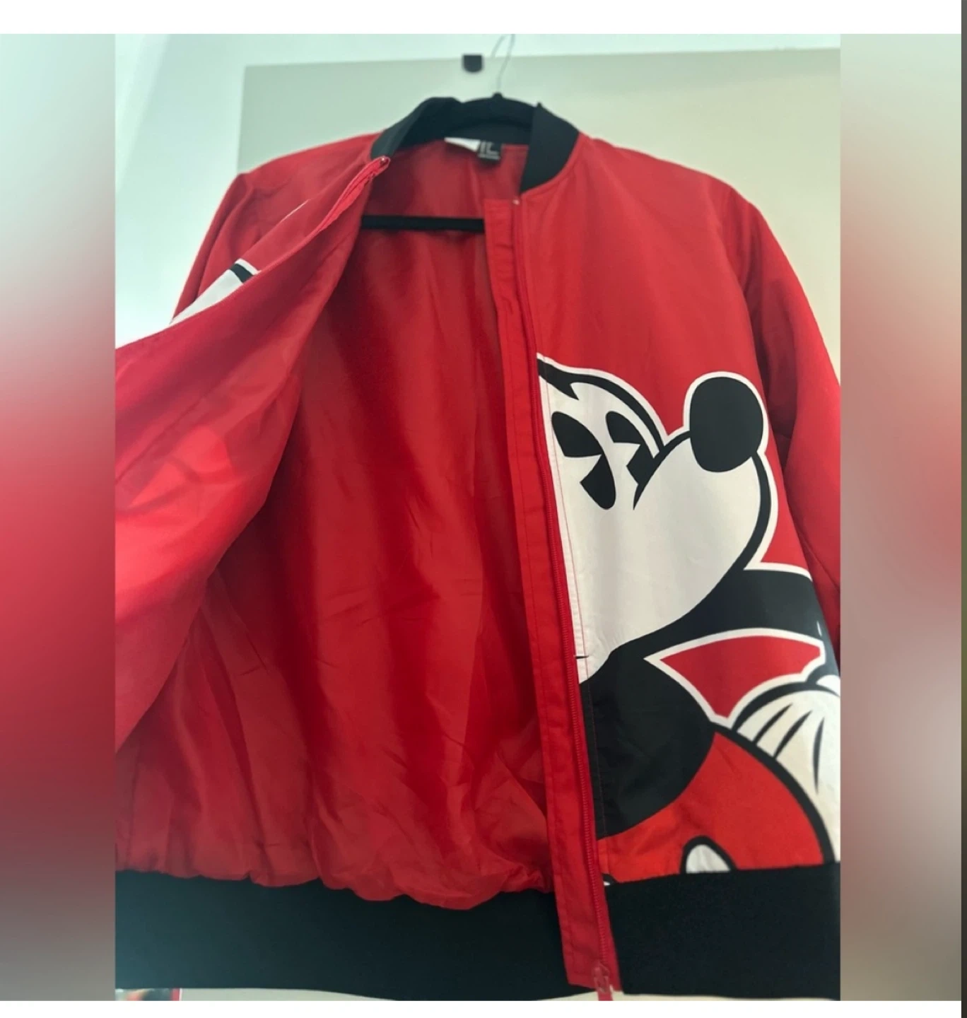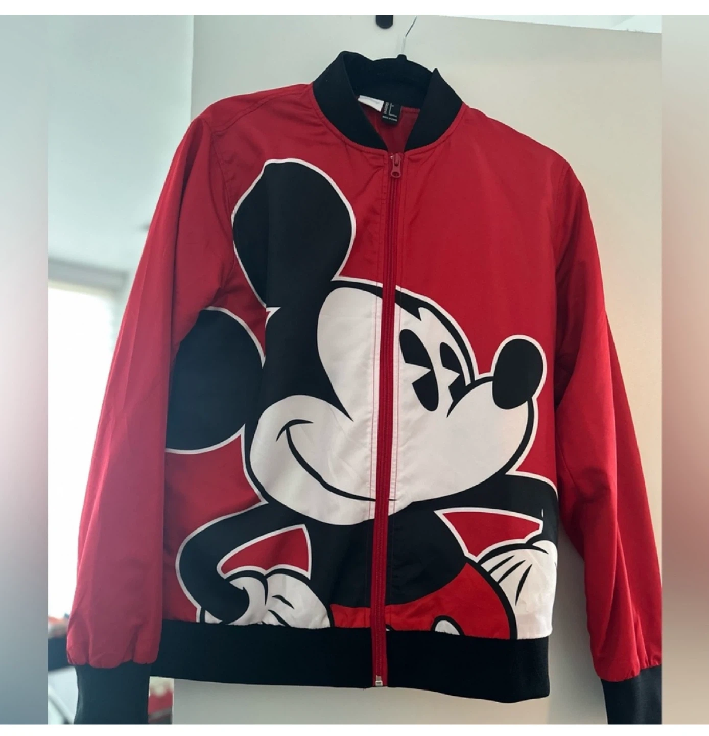 Selling a cute Disney Mickey Mouse bomber jacket! It's a bright red colour with black accents. Size S. Perfect for a Disney fan!