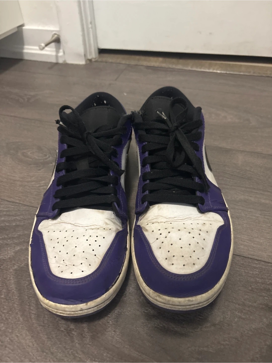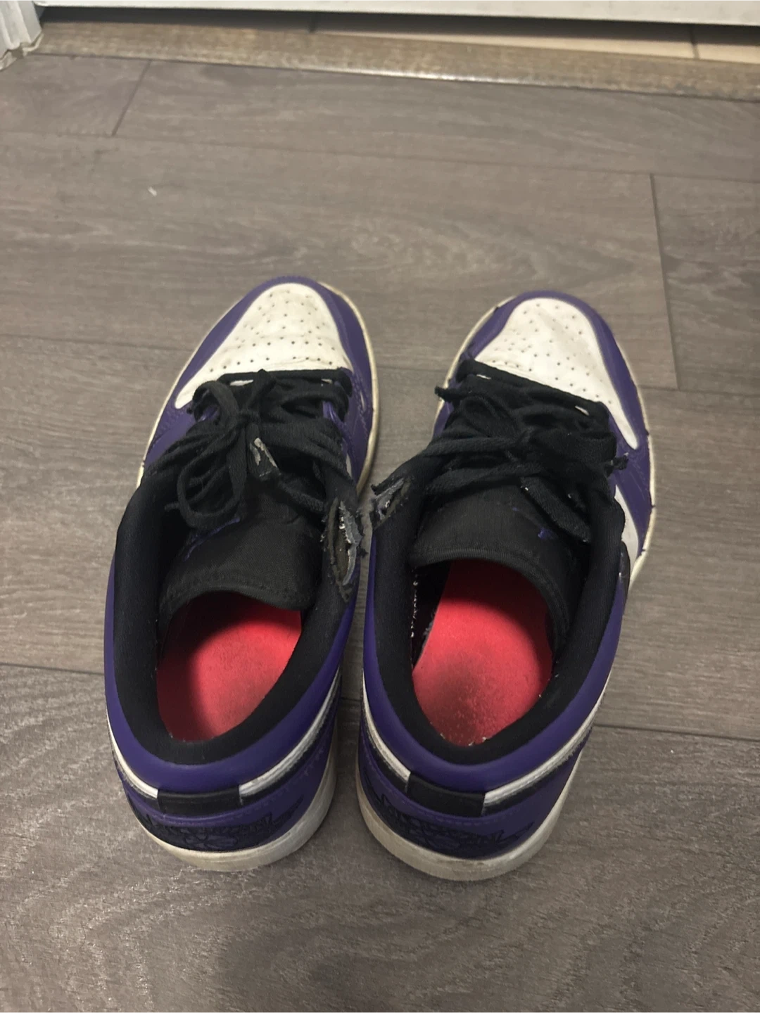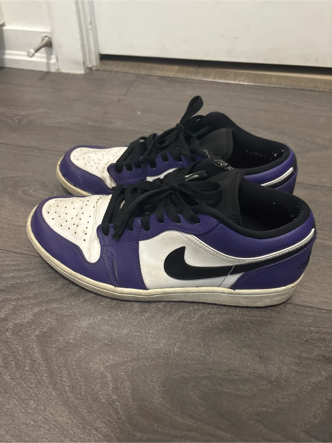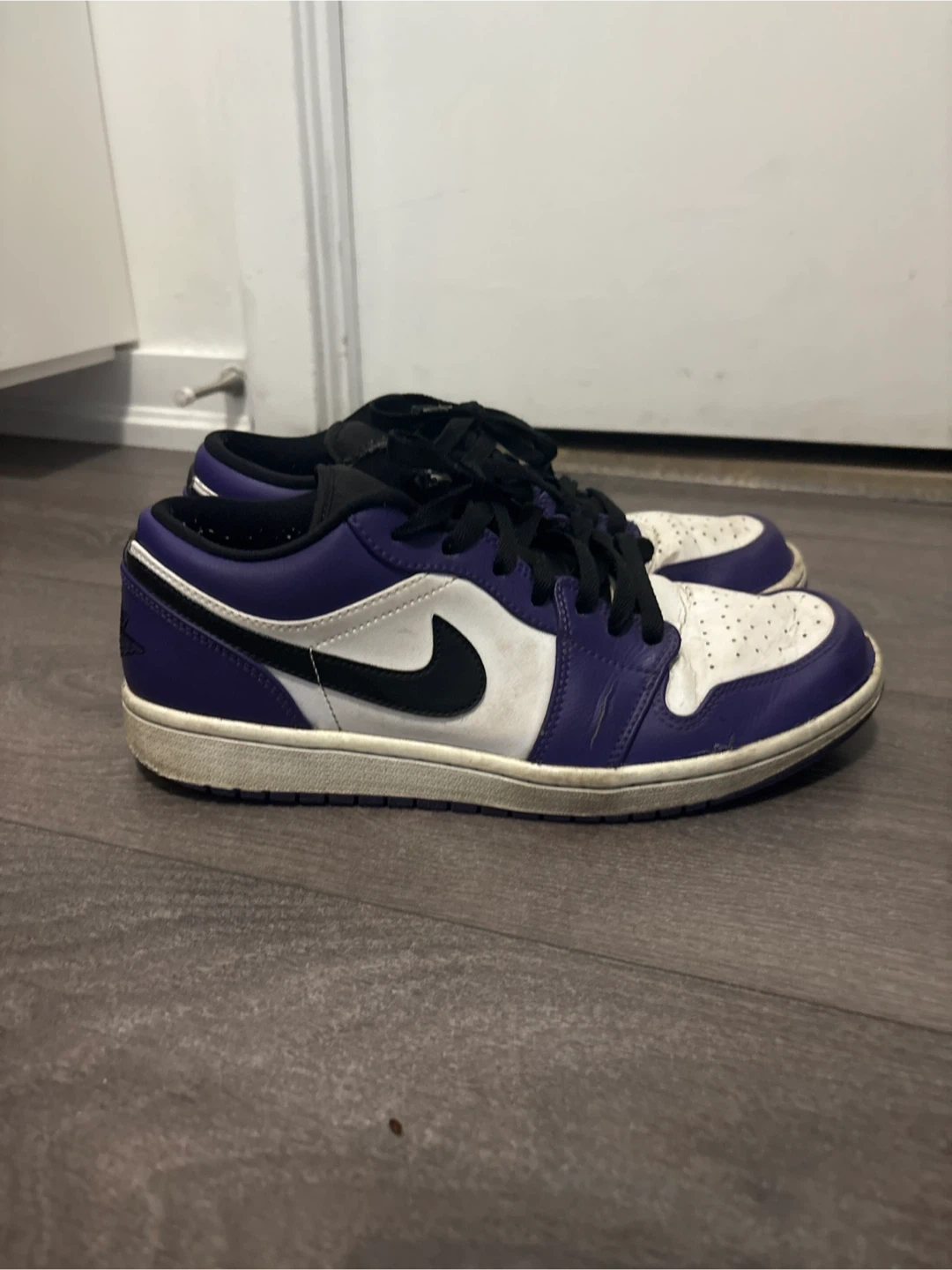 Selling a pair of Nike Air Jordan 1 Low sneakers in a purple and white colourway! They have been worn, so please see the pictures for condition