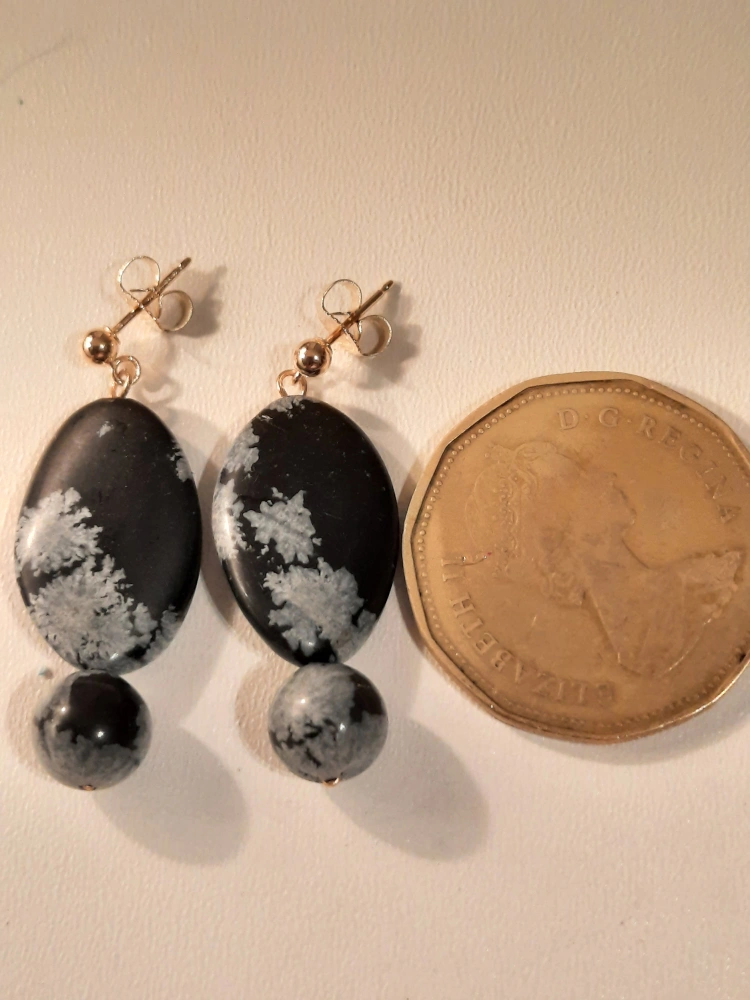 Selling 14K solid gold beautiful necklace and earring set.obsedian stone black and grey tones.great condition. oshawa.