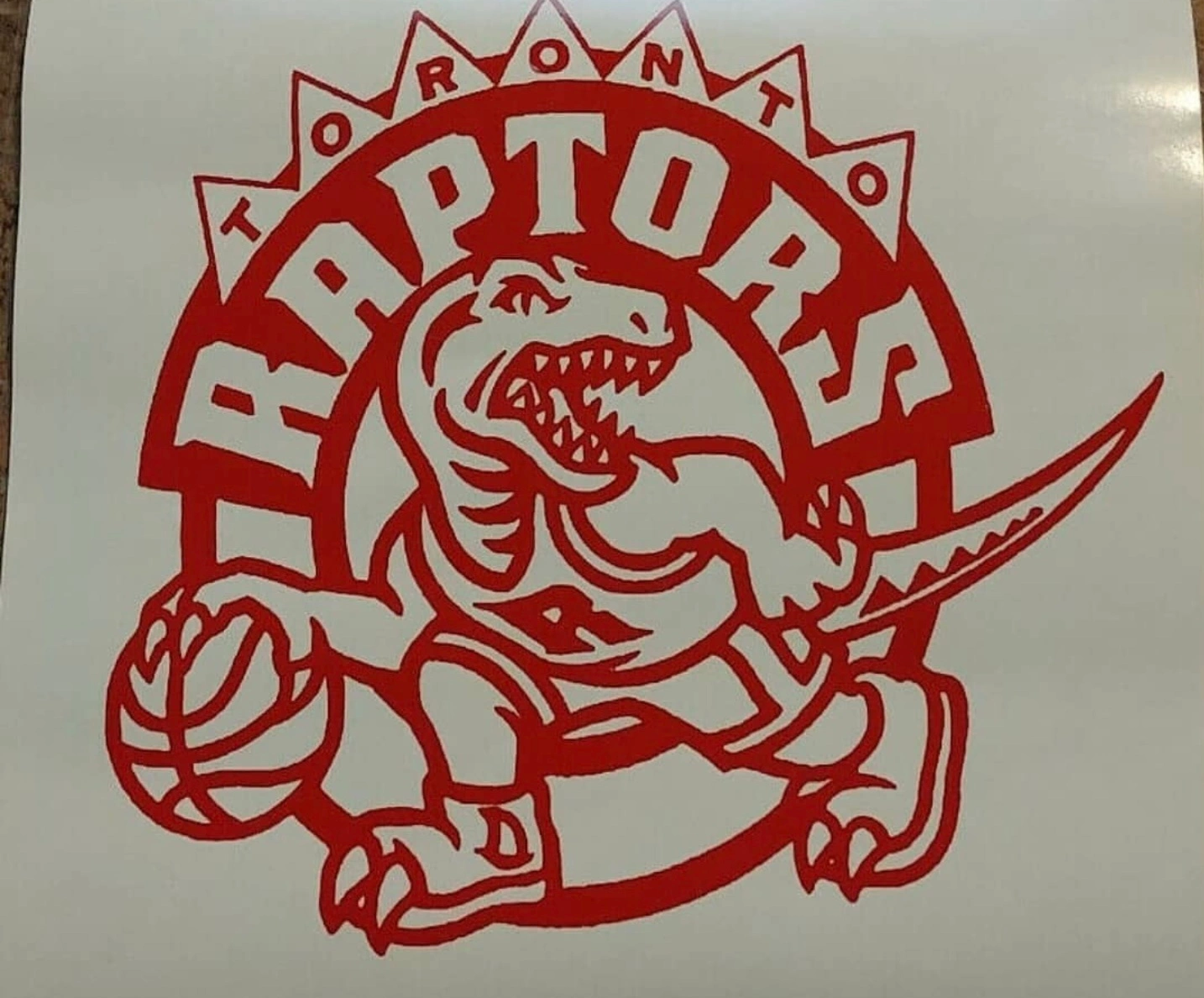 Show your Raptors pride with this cool vinyl decal! It features the iconic Toronto Raptors logo in a vibrant red. Perfect for adding some team spirit to your car, laptop, or any smooth surface