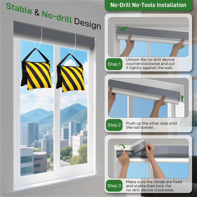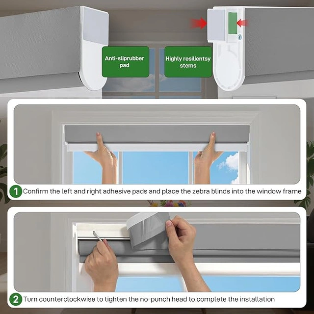 New! No Drill Cordless Zebra Blinds